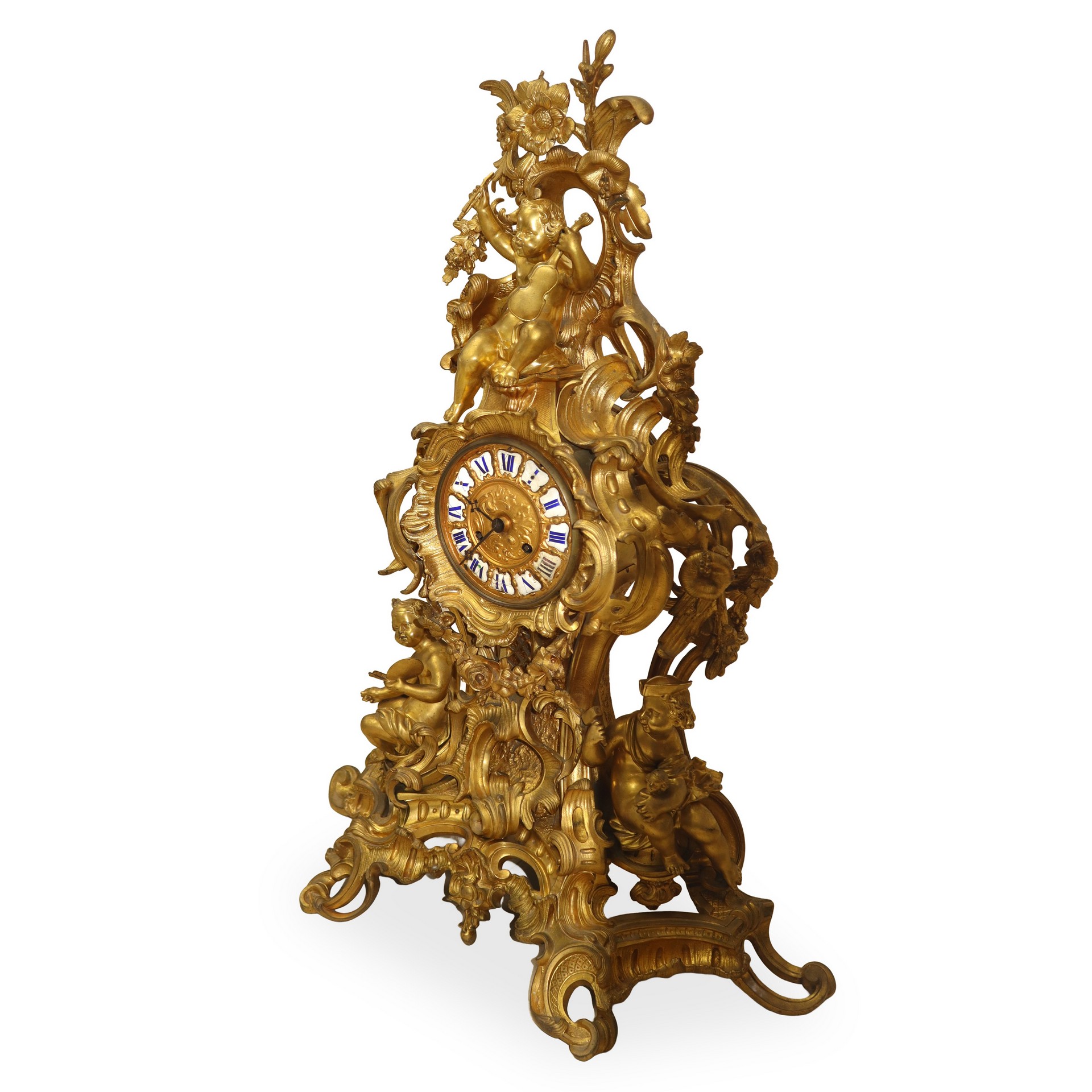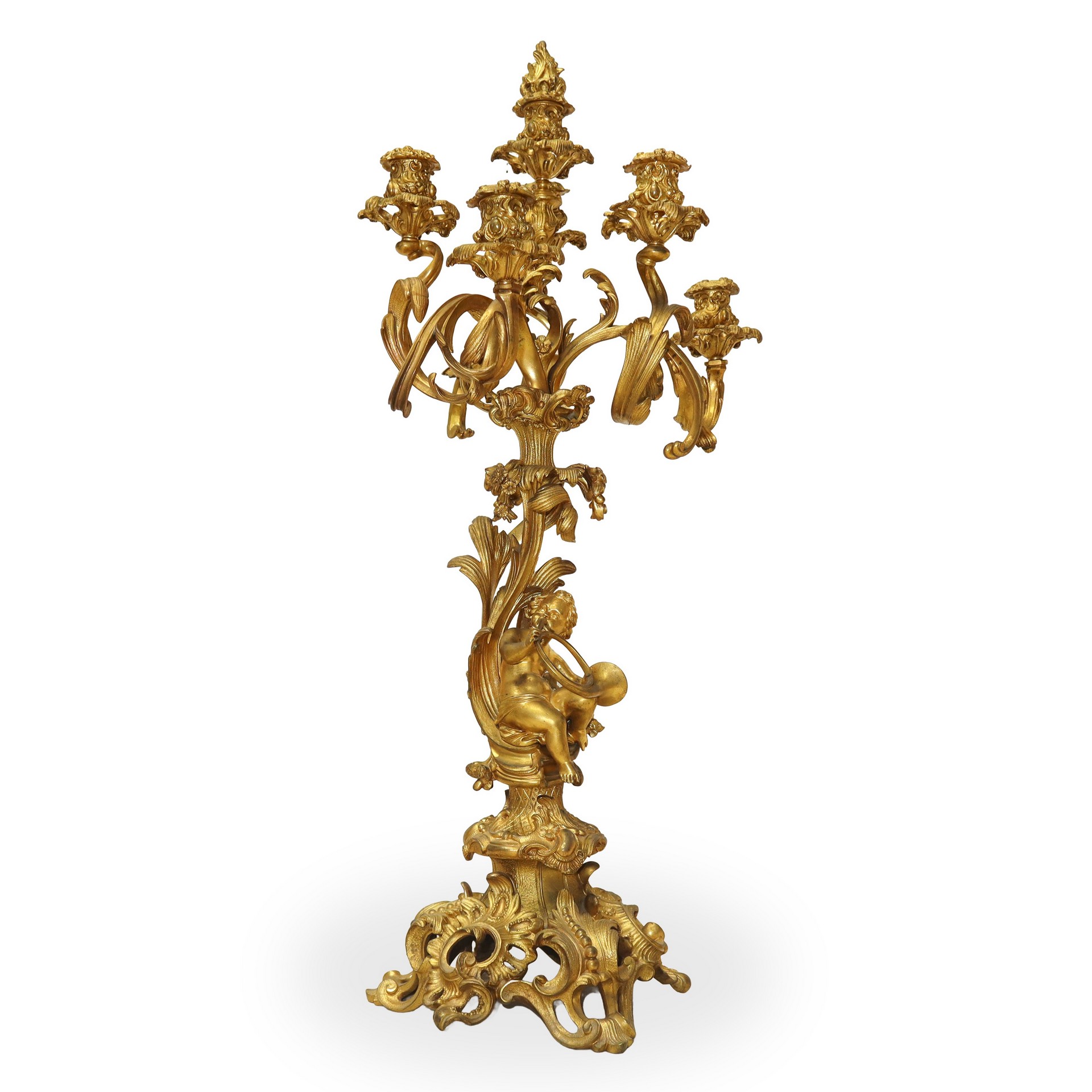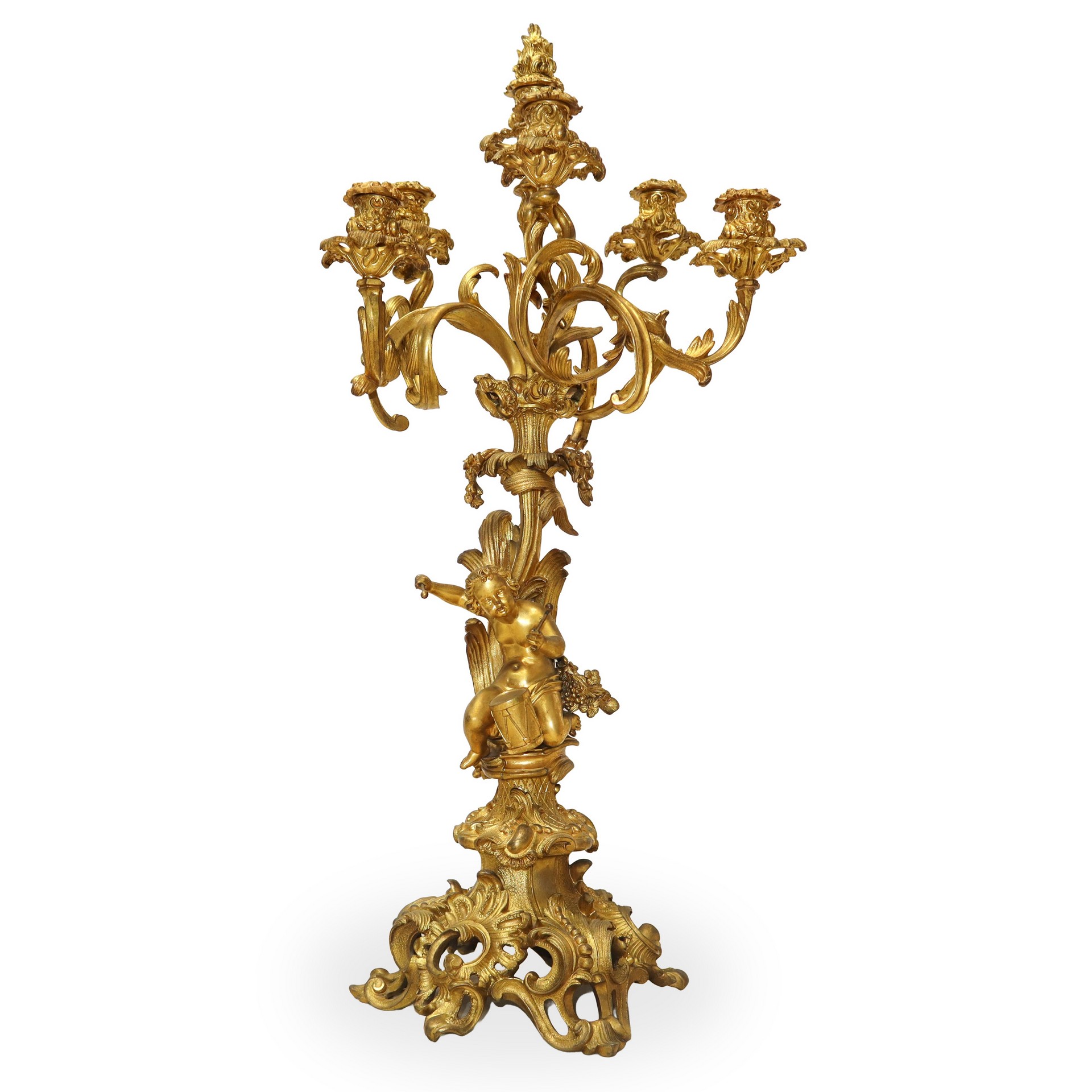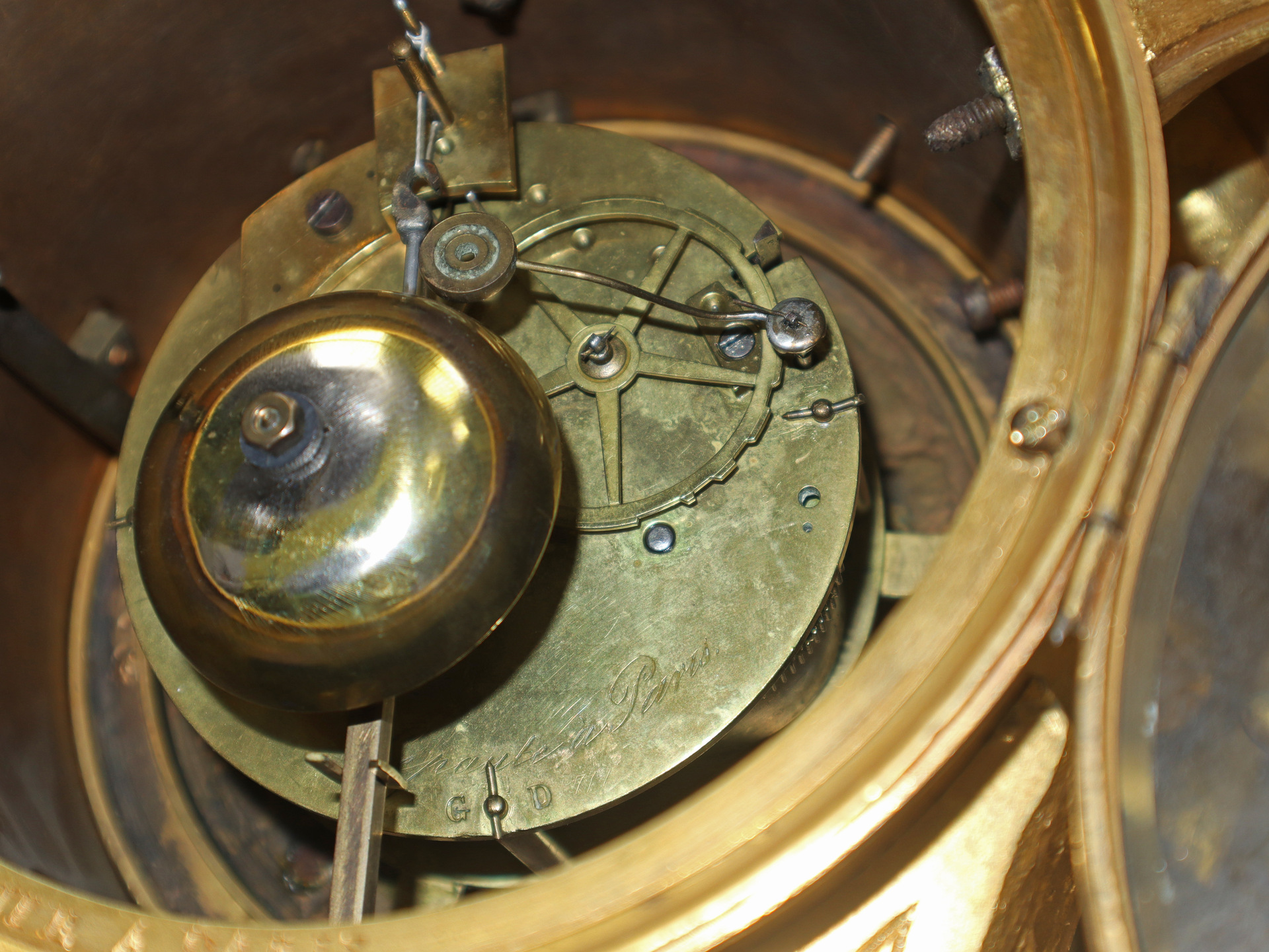 Jean-André Lepaute (1720 - 1789) - Trittico Luigi XVI in bronzo dorato composto da orologio e candelabri, Paris 18° secolo