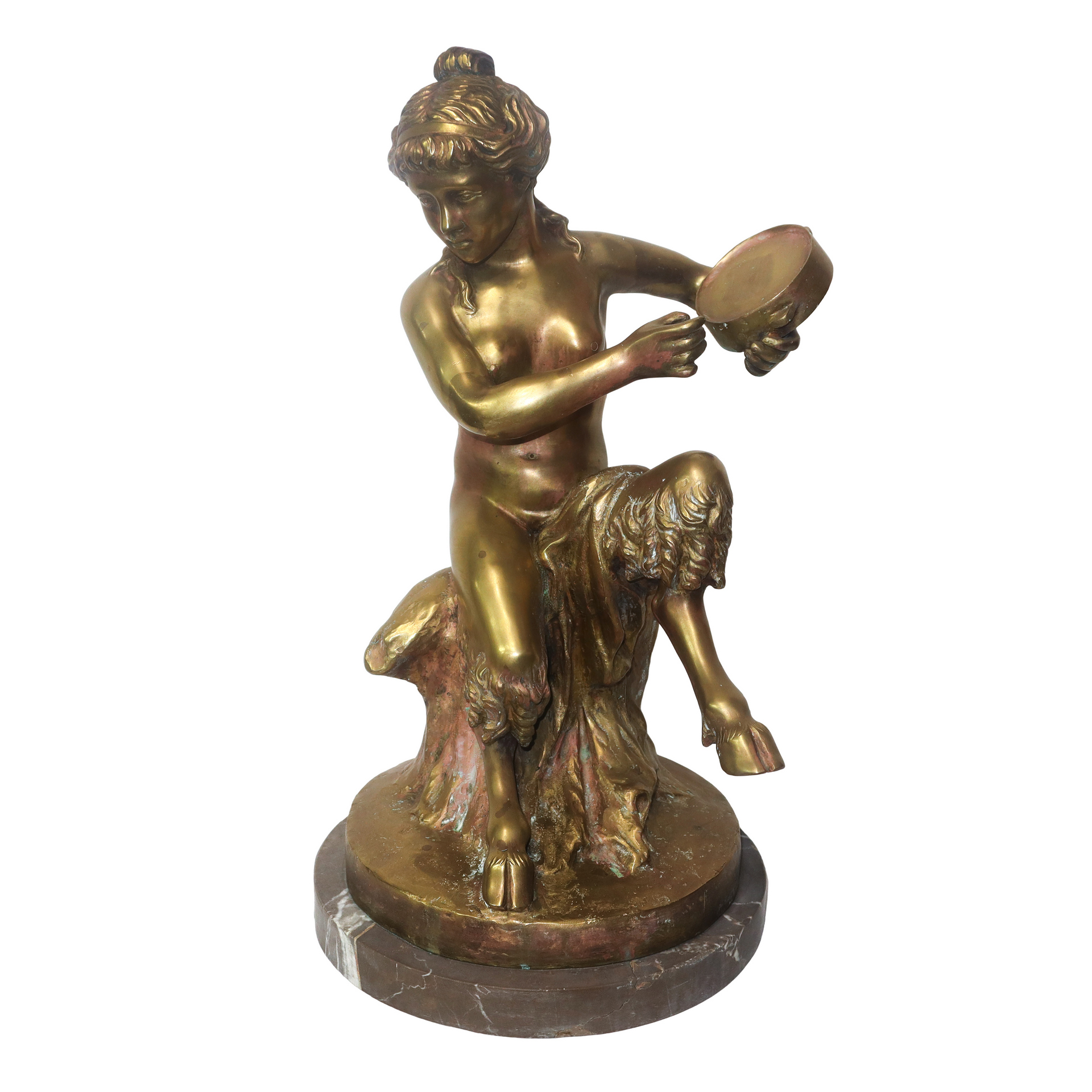 Vincenzo Cinque (Napoli 1852 - Napoli 1929) - Fauni suonatori, coppia sculture in ottone patinato oro con base in marmo