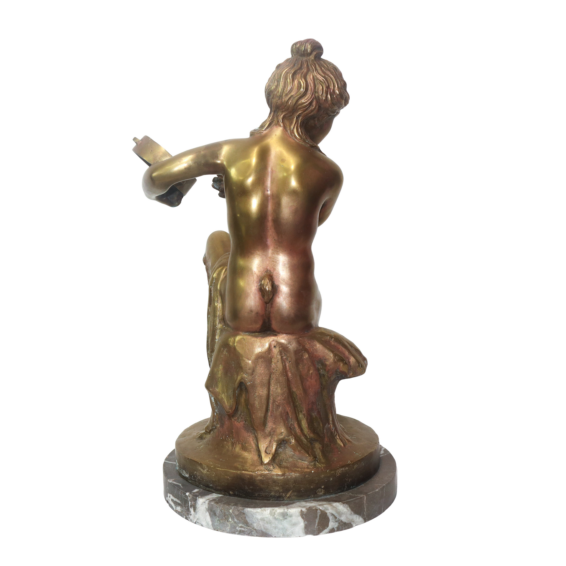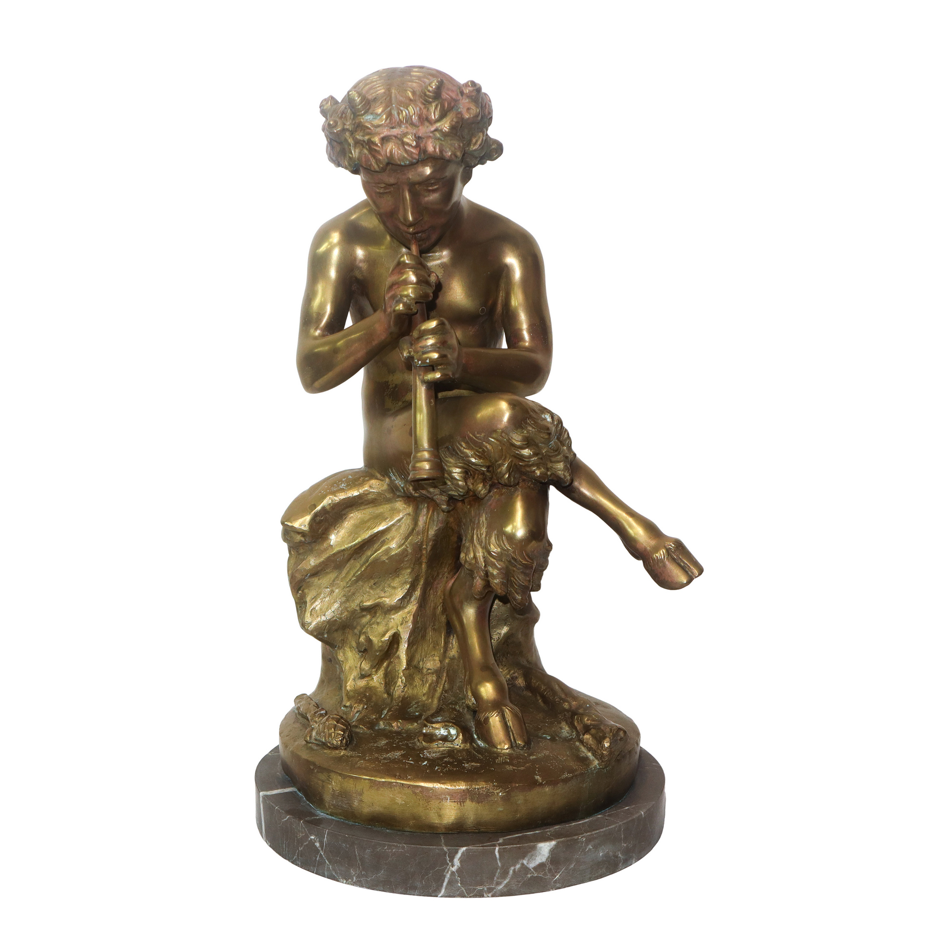 Vincenzo Cinque (Napoli 1852 - Napoli 1929) - Fauni suonatori, coppia sculture in ottone patinato oro con base in marmo h cm 50 h cm 52 Firmato alla base