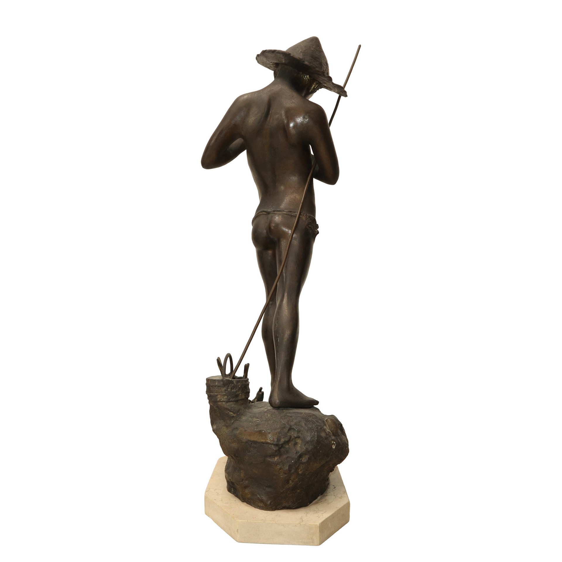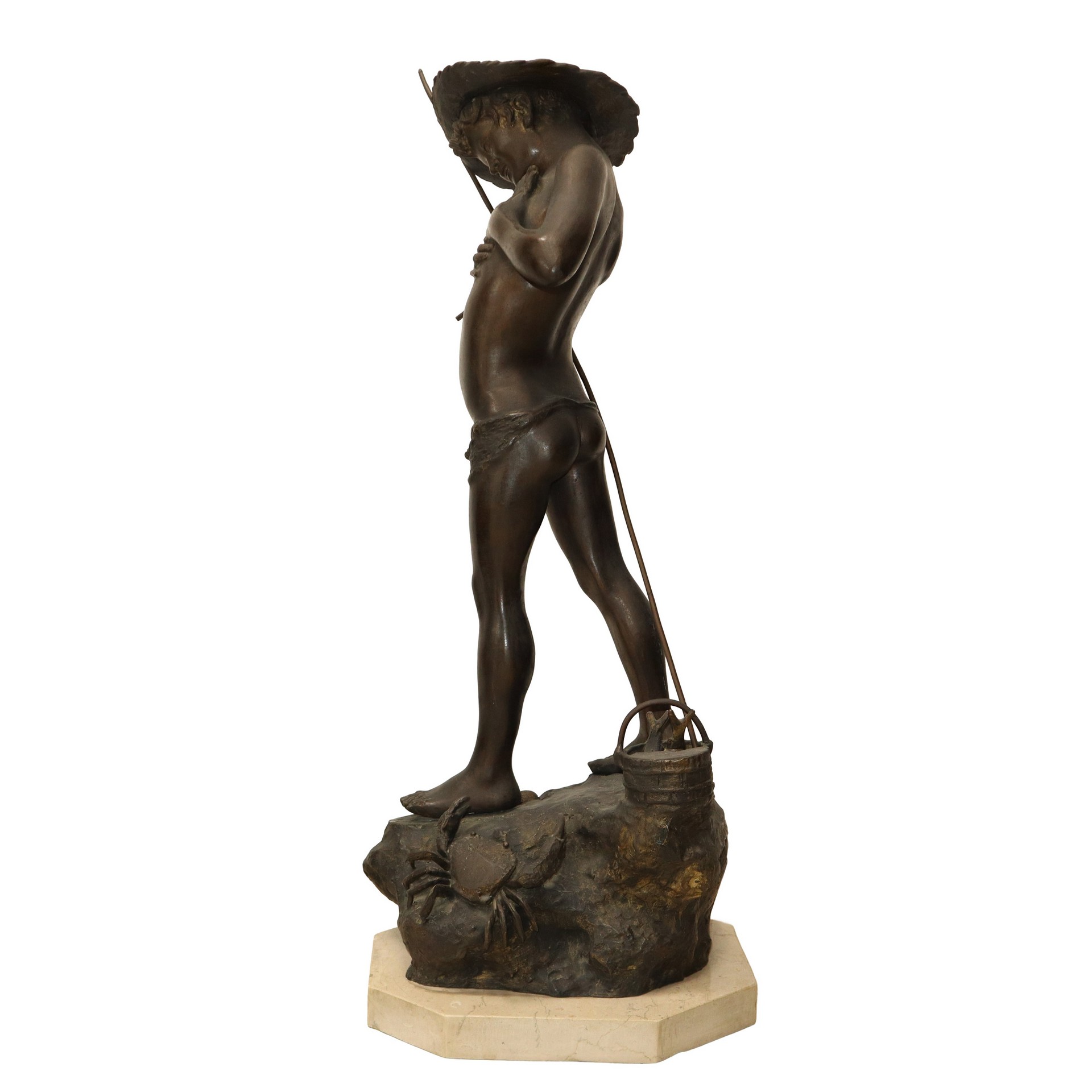 Gianni Varlese (Napoli 1888 - Napoli 1922) - Pescatorello, scultura in bronzo su base in marmo h cm 74 Firmato alla base al retro sotto il piede della figura