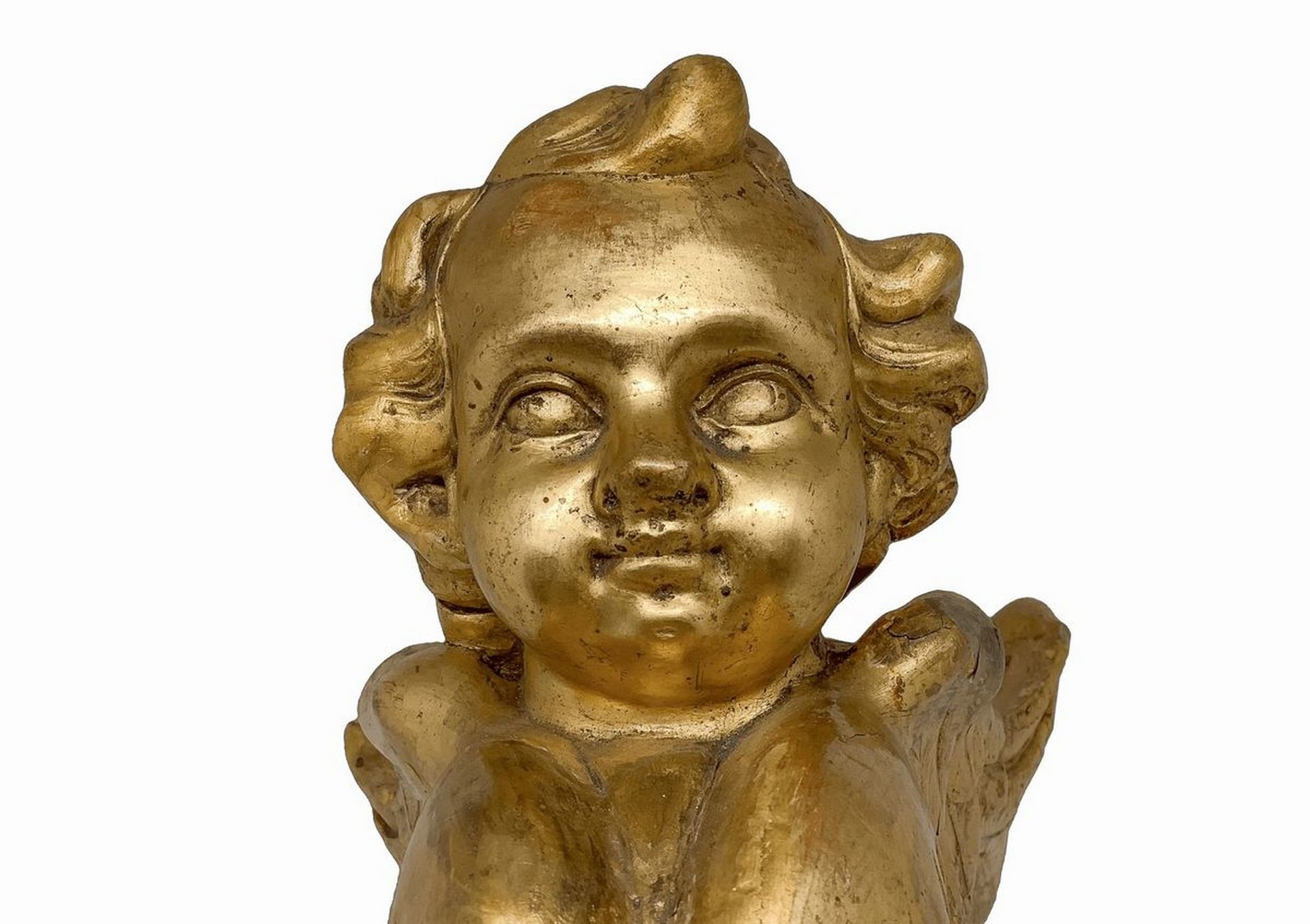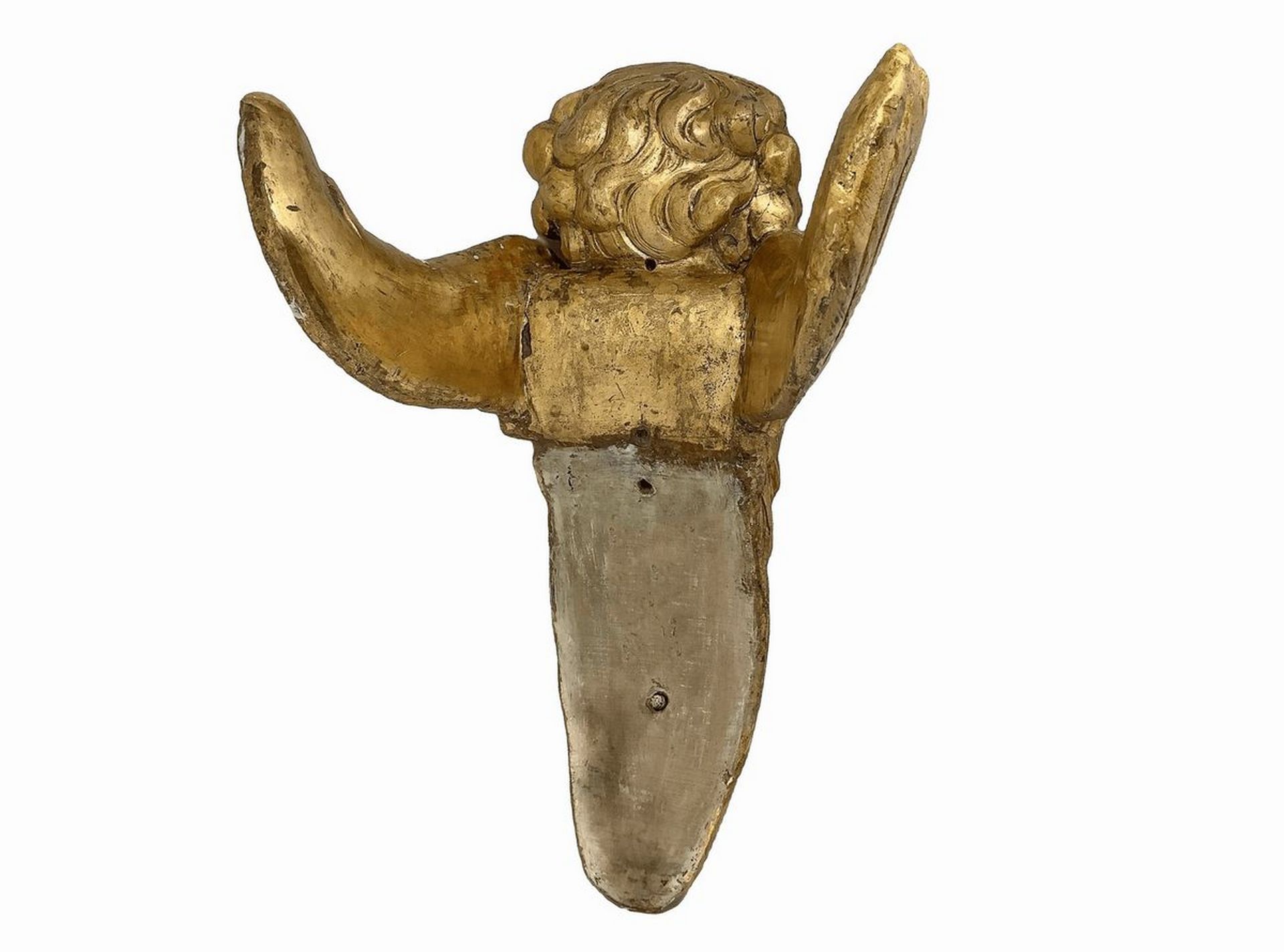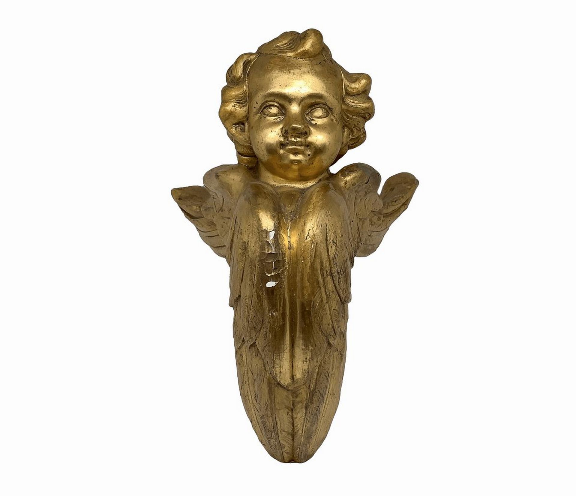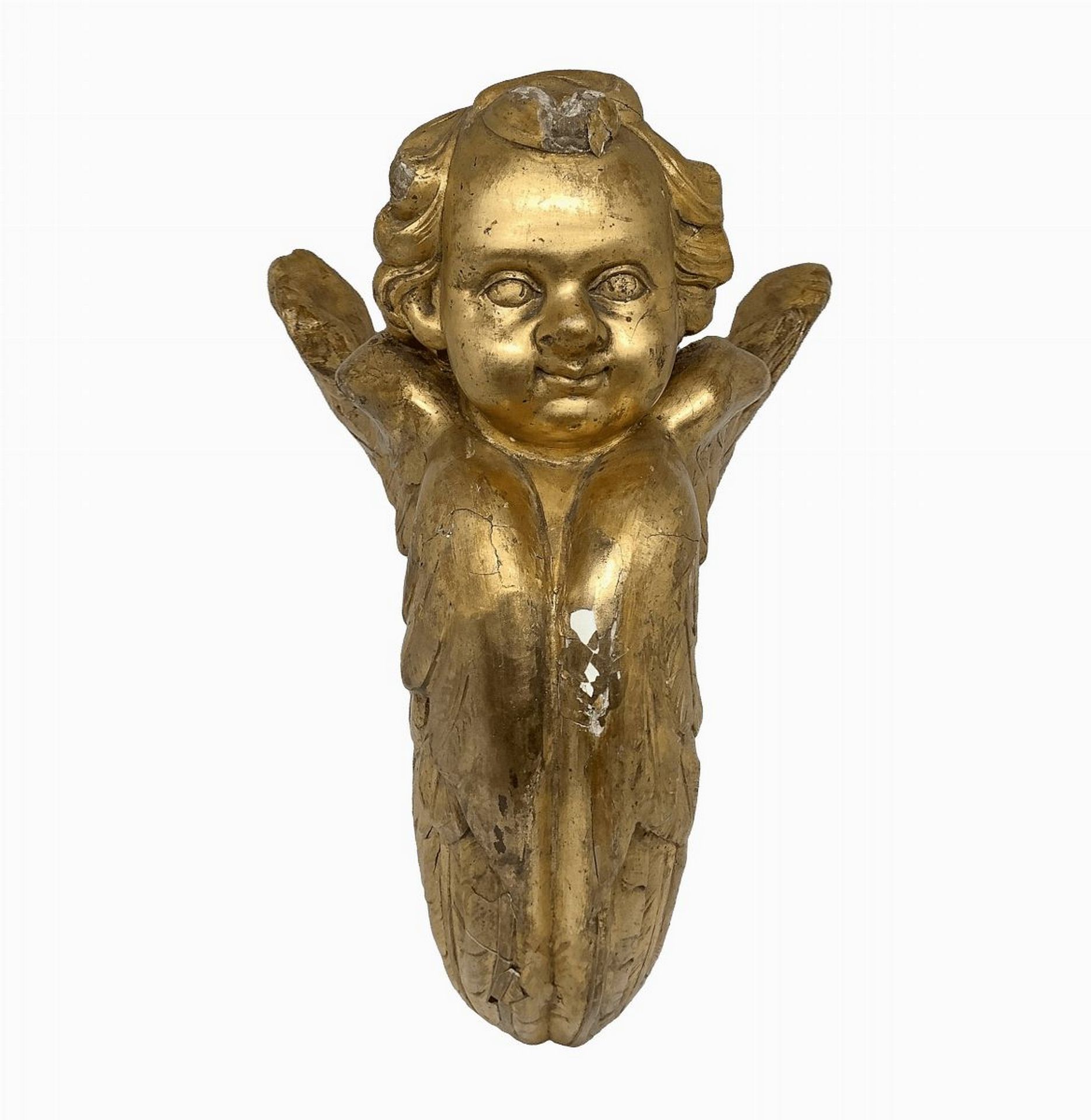 Coppia di angeli alati, fregi legnei, Sicily, fine 18° secolo h cm 29; profondità cm 21 Legno gessato e dorato a foglia