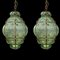 COPPIA DI LANTERNE DA ESTERNO IN VETRO DI MURANO VERDE CON DETTAGLI IN METALLO
