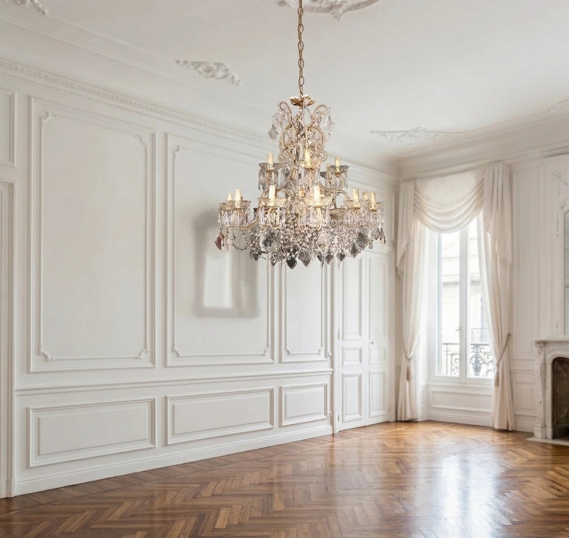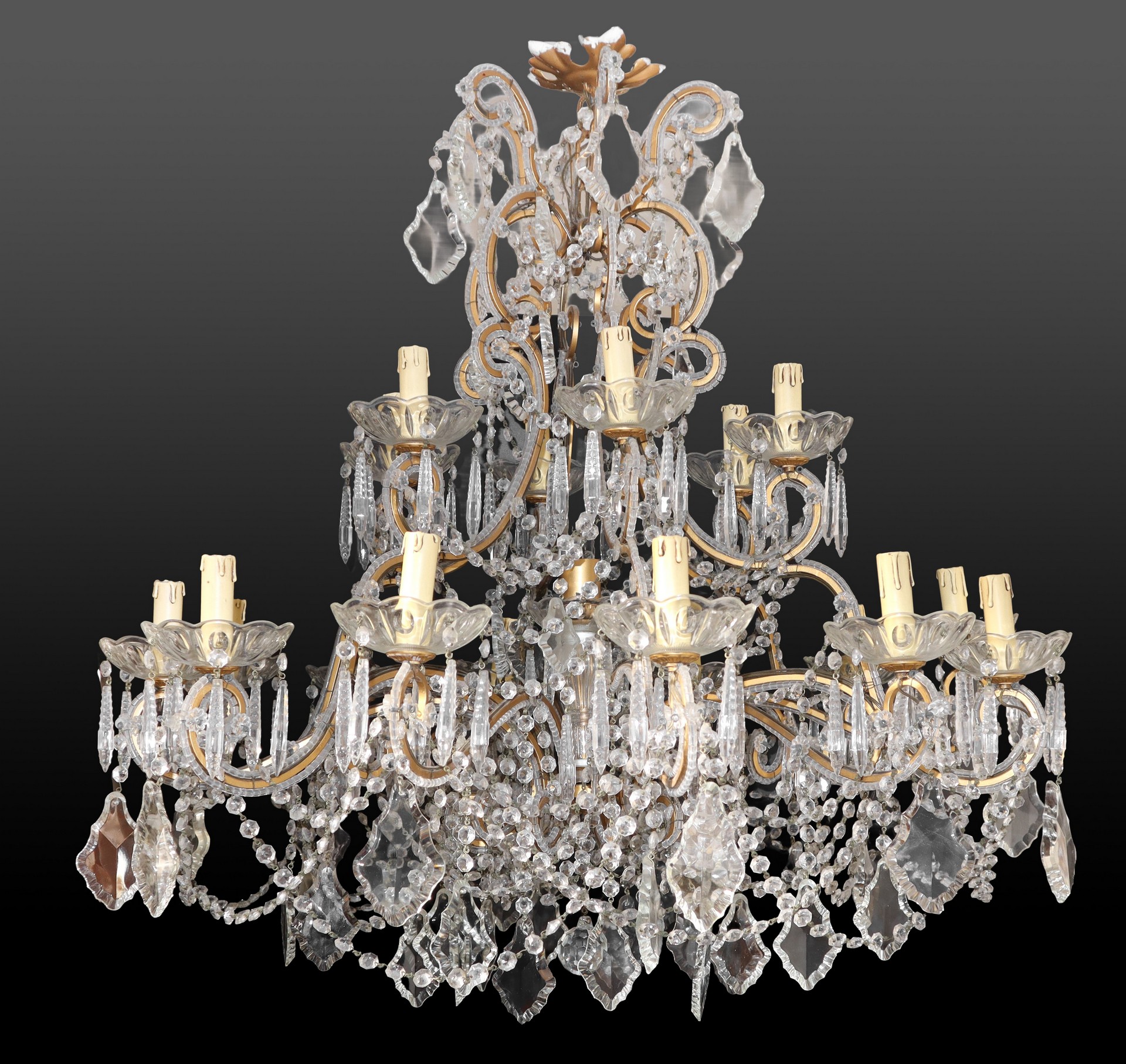 Lampadario in metallo e brindoli a 18 luci h cm 87X87