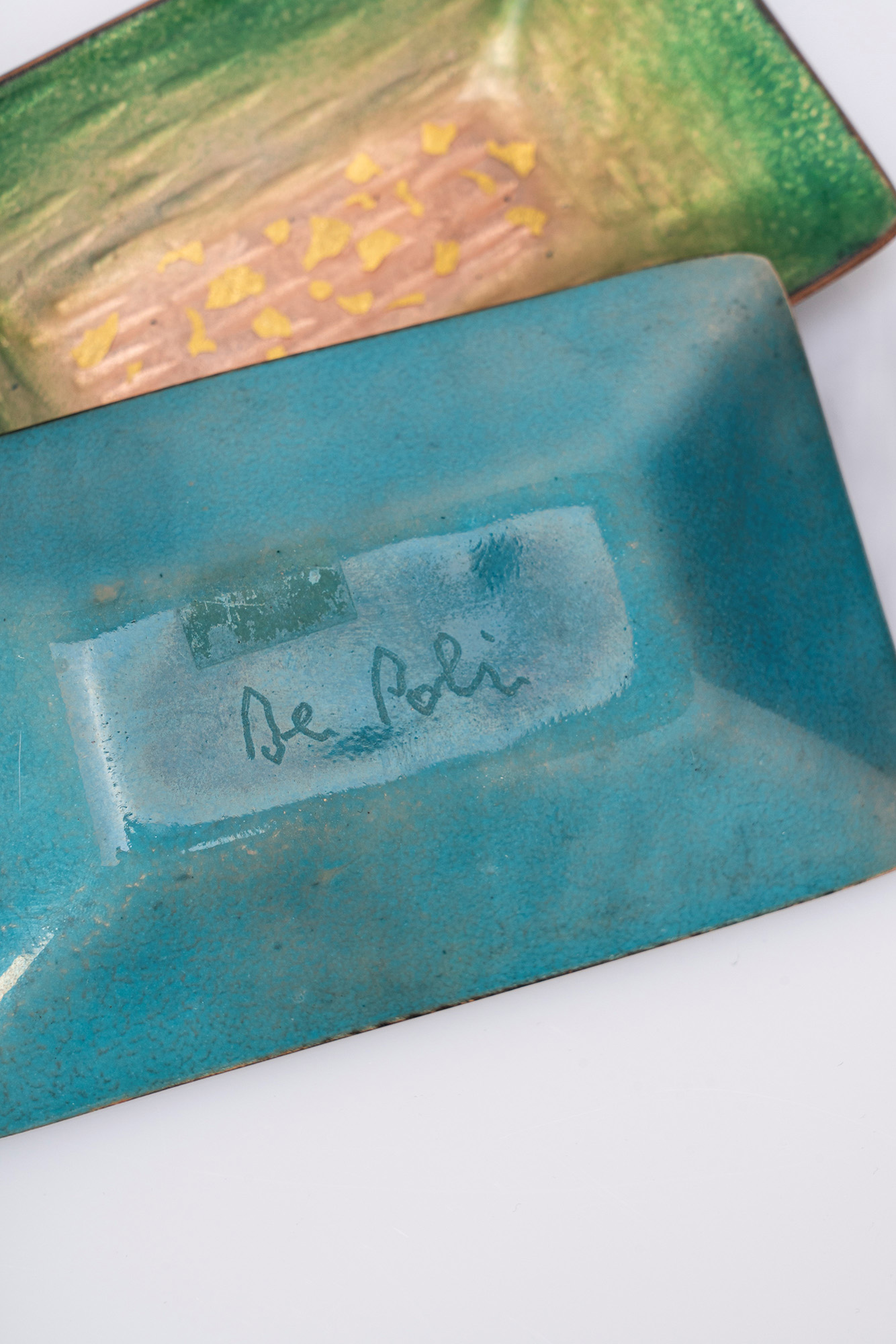 Paolo De Poli - Set di tre svuotatasche a smalti policromi su rame nei toni del blu e verde, 1960 circa