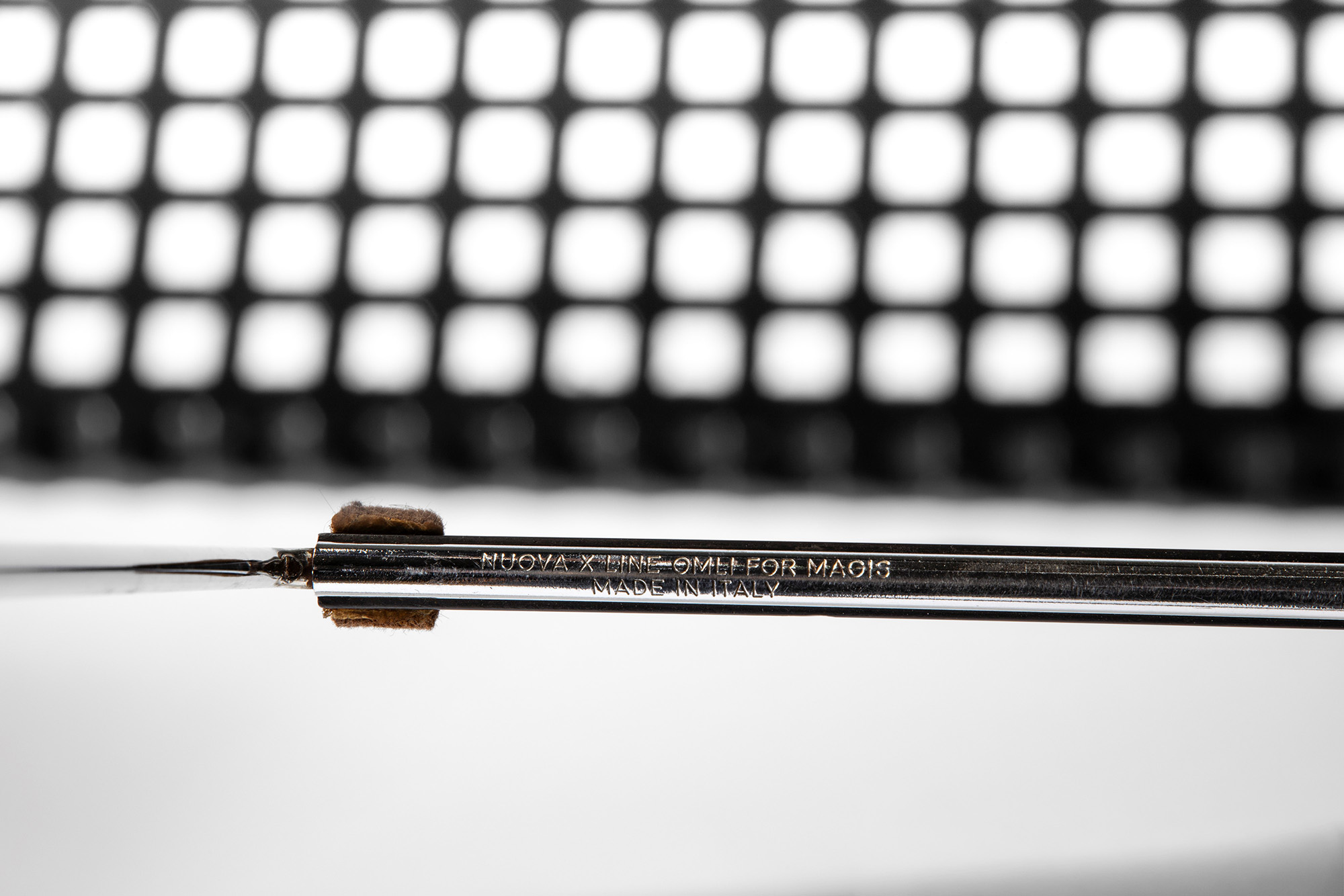 logo incusso NUOVA X LINE ONLI FOR MAGIS, MADE IN ITALY sul metallo