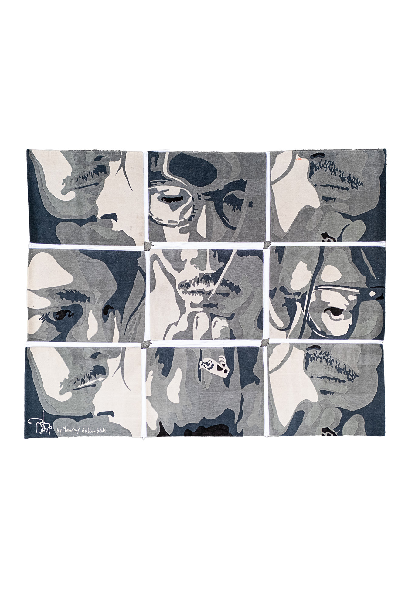 Tappeto ritratto di Johnny Depp annodato a mano composto da 9 elementi uniti con delle cerniere nautiche