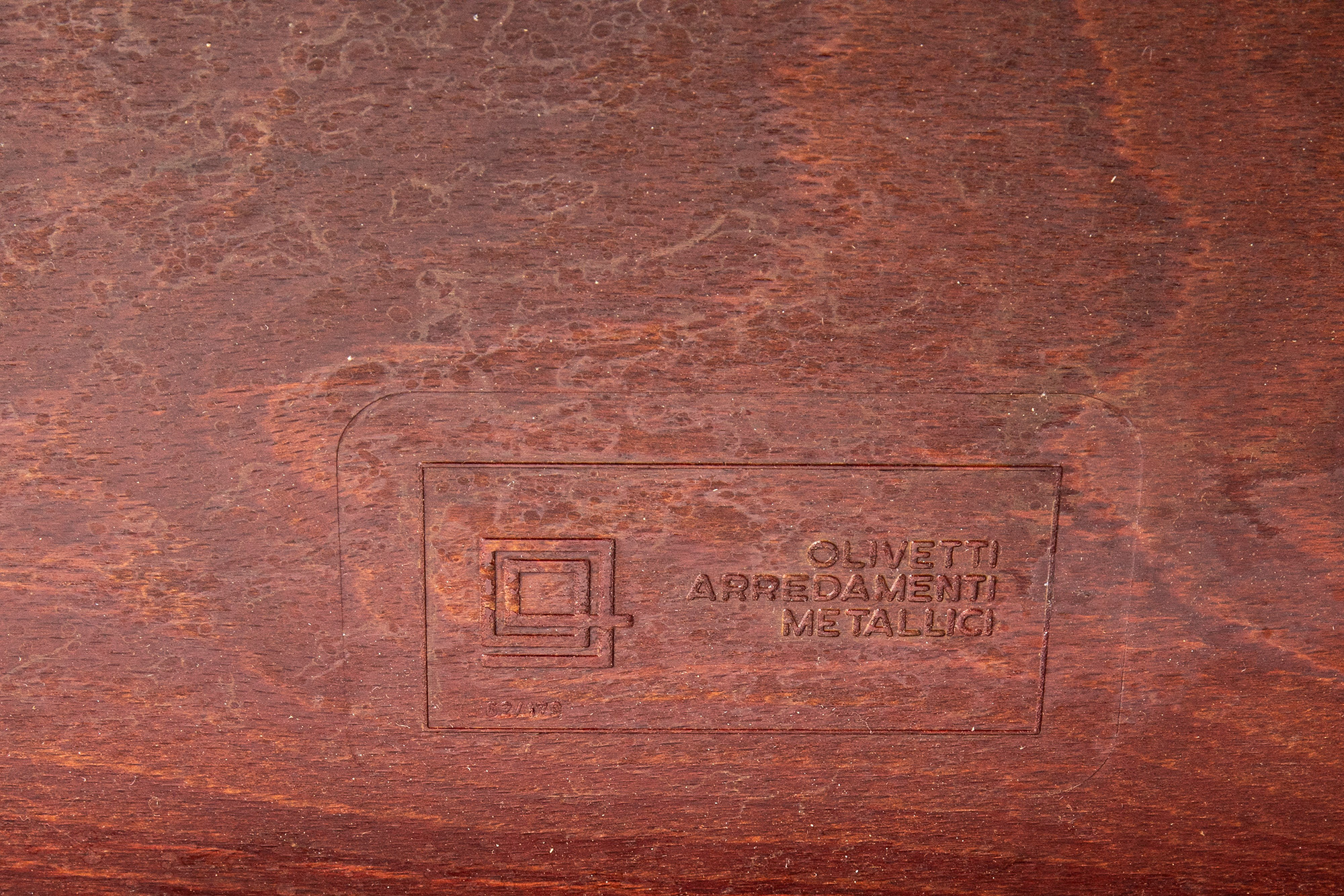 logo in rilievo OLIVETTI ARREDAMENTI METALICI sotto il piano
