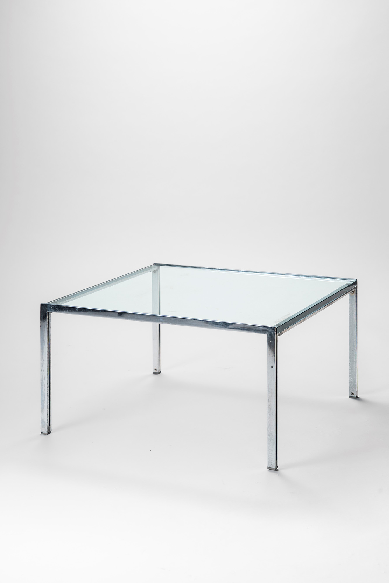 Tavolino modello 'Luar - TLR.2 'con struttura in acciaio cromato e piano in vetro