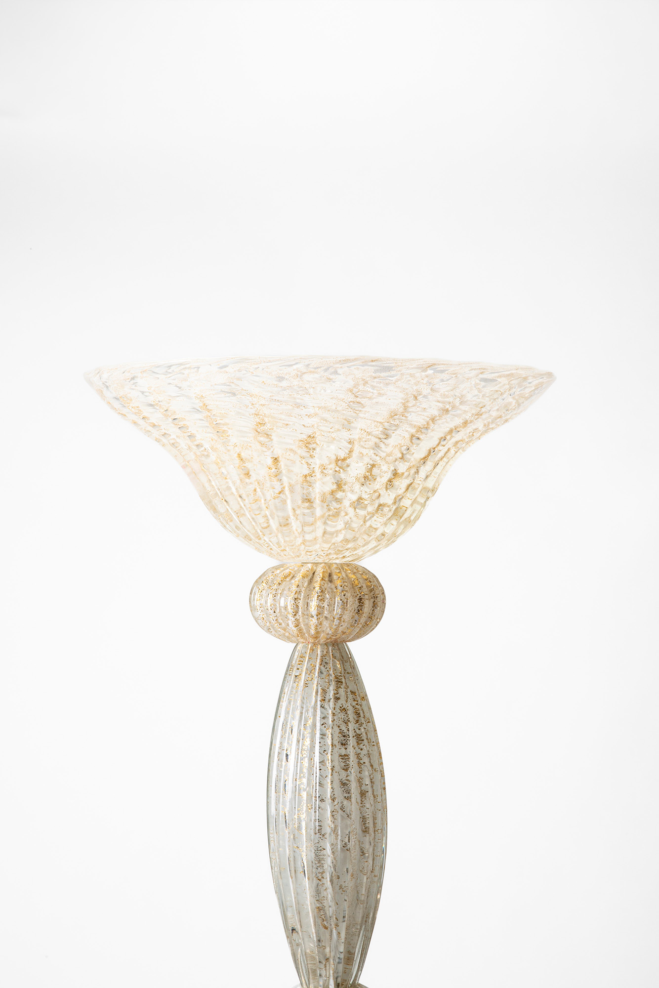 Lampada da terra in vetro con decoro a foglia d'oro e fusto interno in metallo verniciato