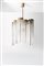 Lampadario con struttura in ottone e diffusori a canne in vetro soffiato