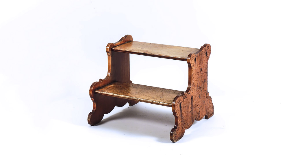 SCALETTA IN LEGNO TENERO inizio del XX secolo due gradini, montanti sagomati...