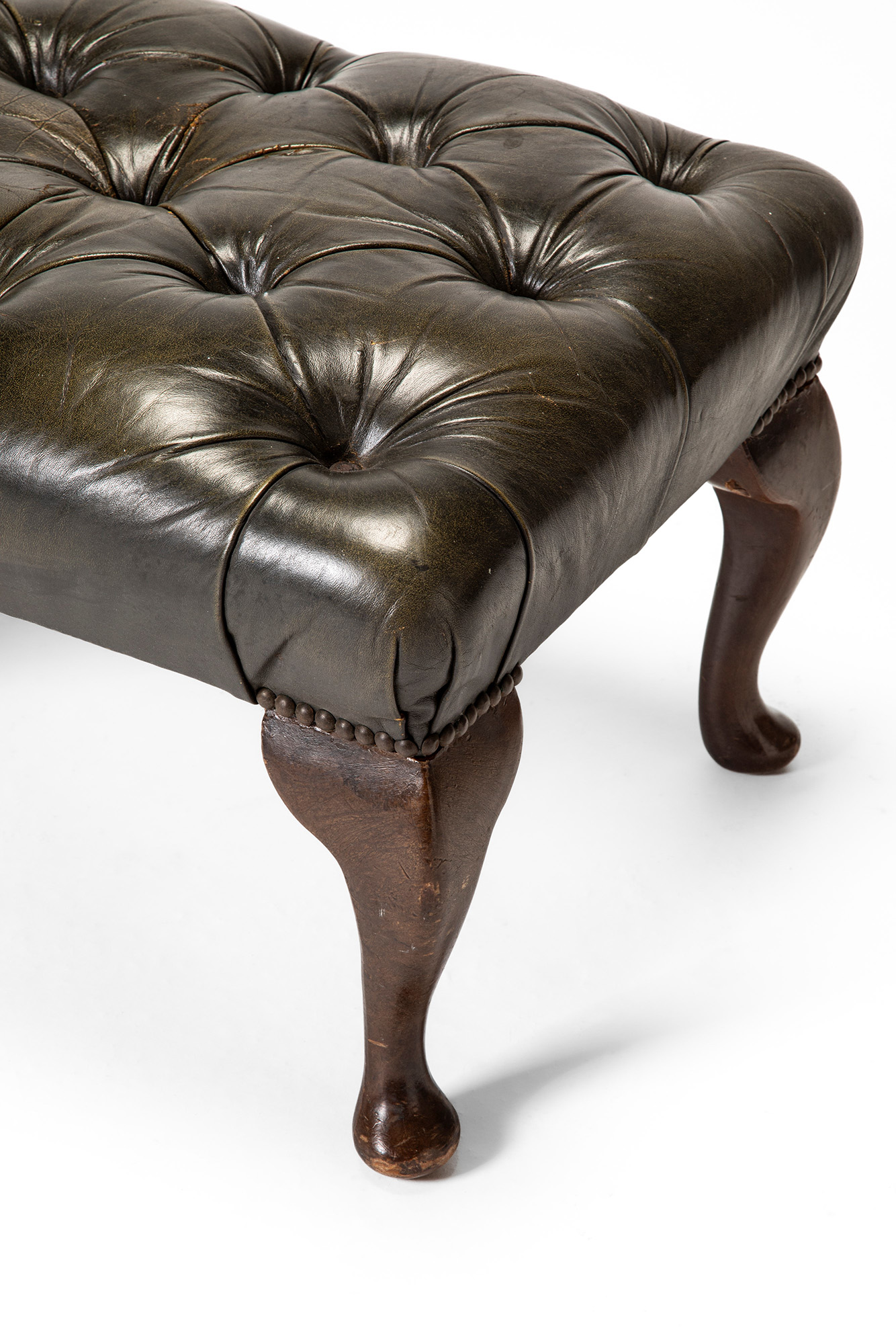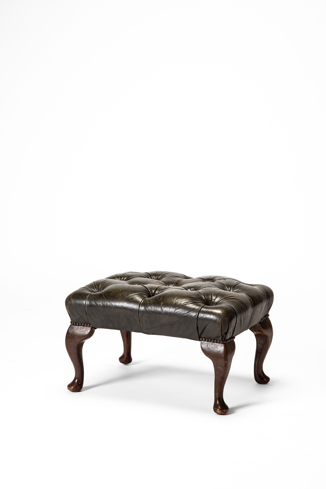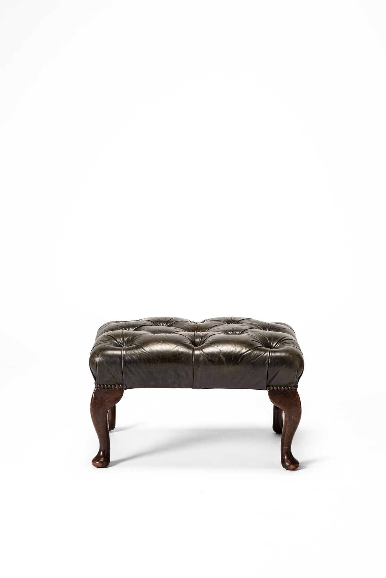 Sgabello con rivestimento in pelle e gambe sagomate