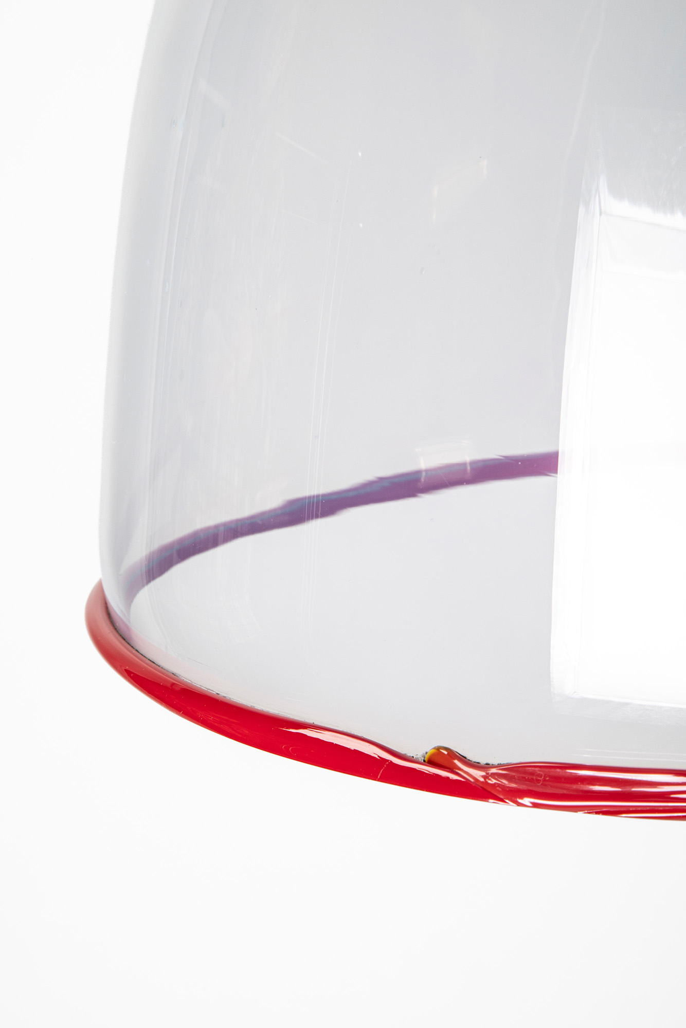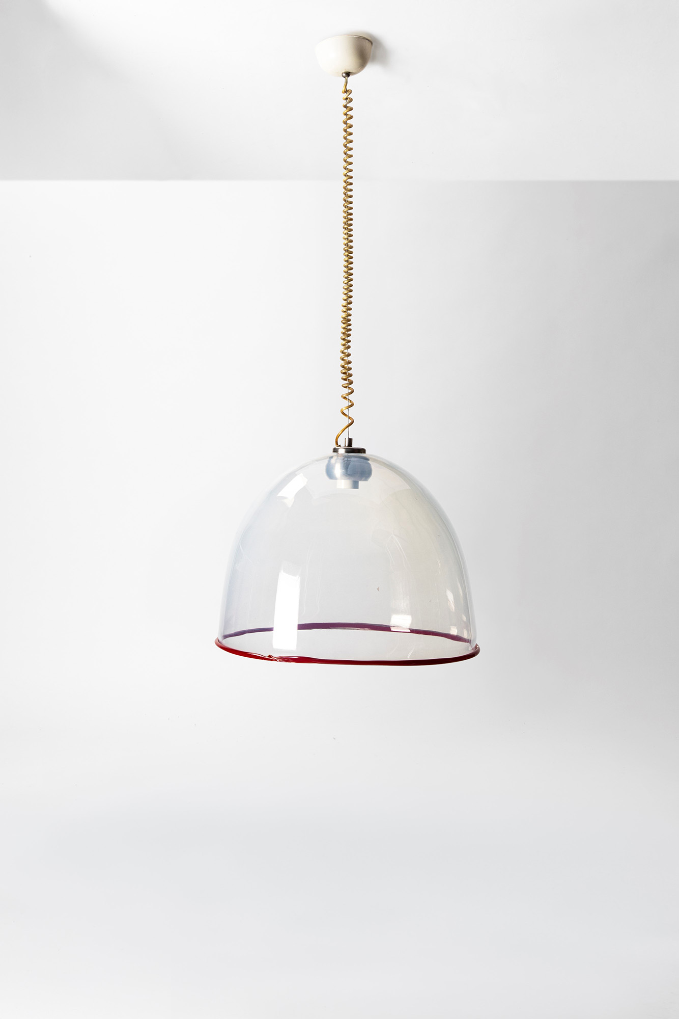 Lampada a sospensione modello Selene con diffusore in vetro e cordolo applicato a caldo