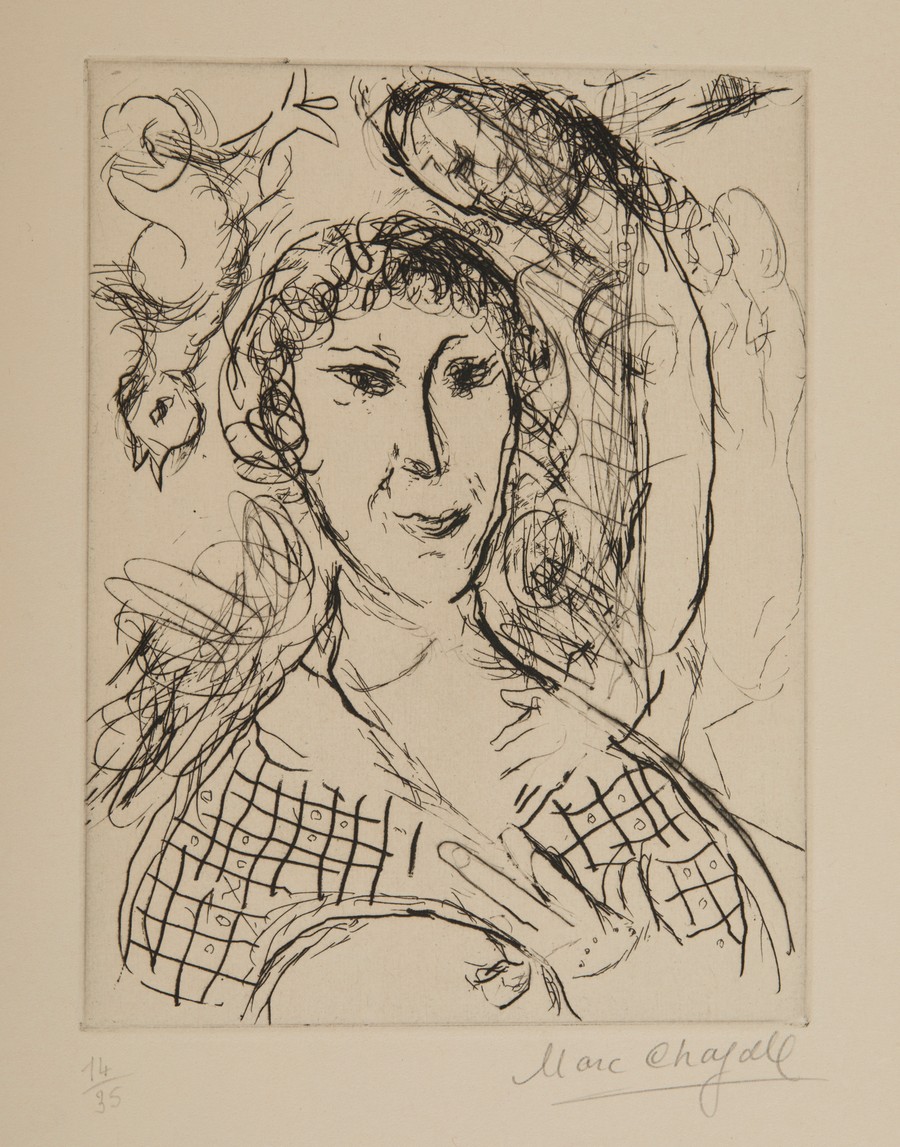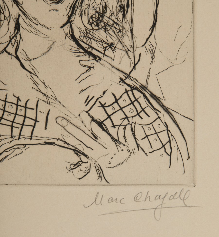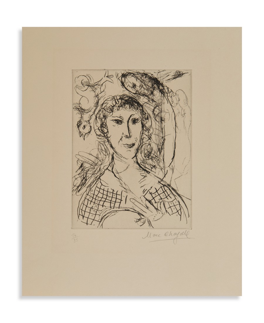 CHAGALL MARC (1887 - 1985) PORTRAIT DU PAINTRE. 1967. acquaforte. Cm 28,30 x 35,30. firma e tiratura a matita, es. 14/35