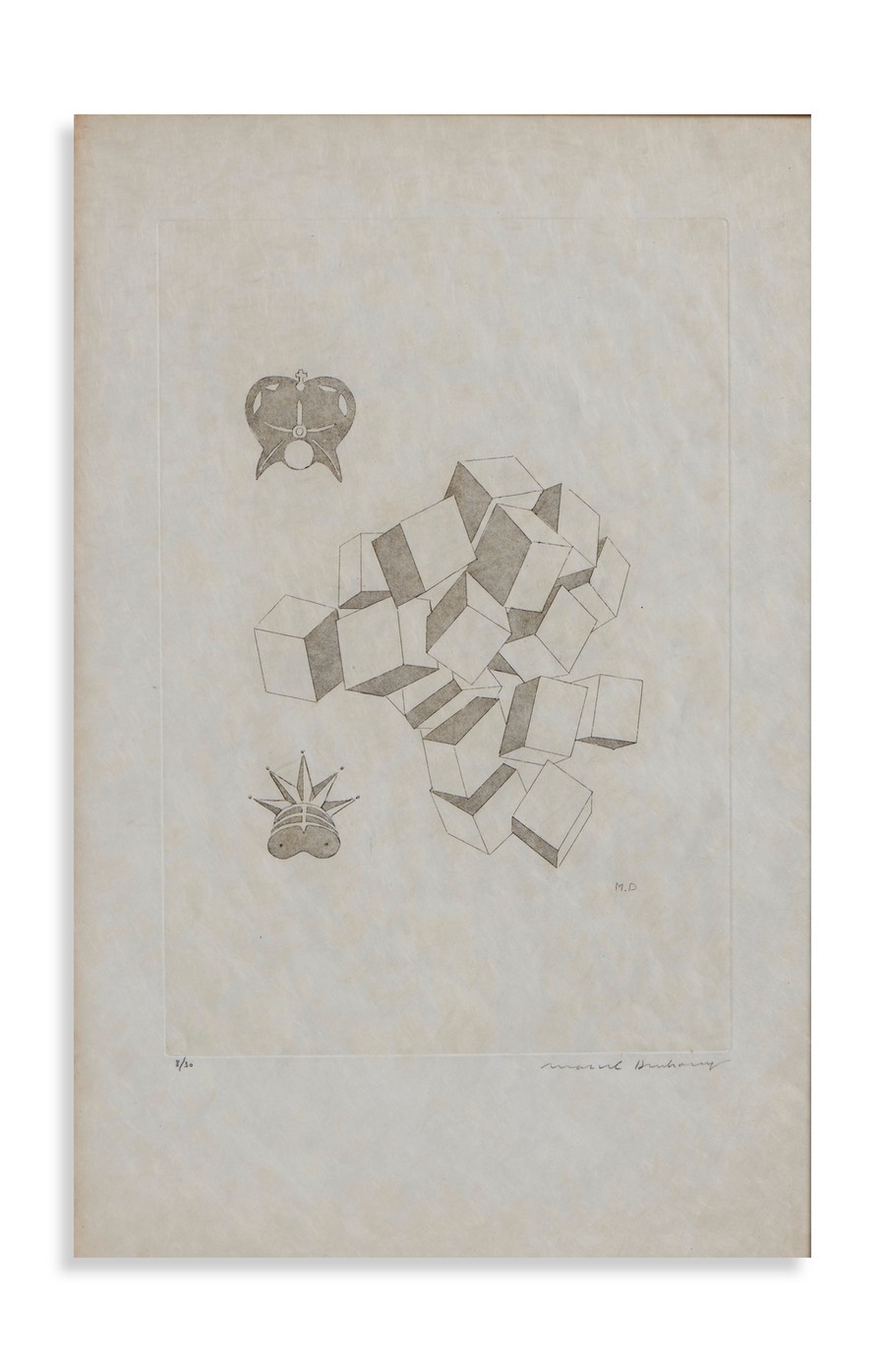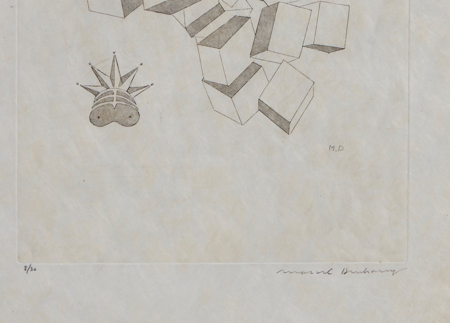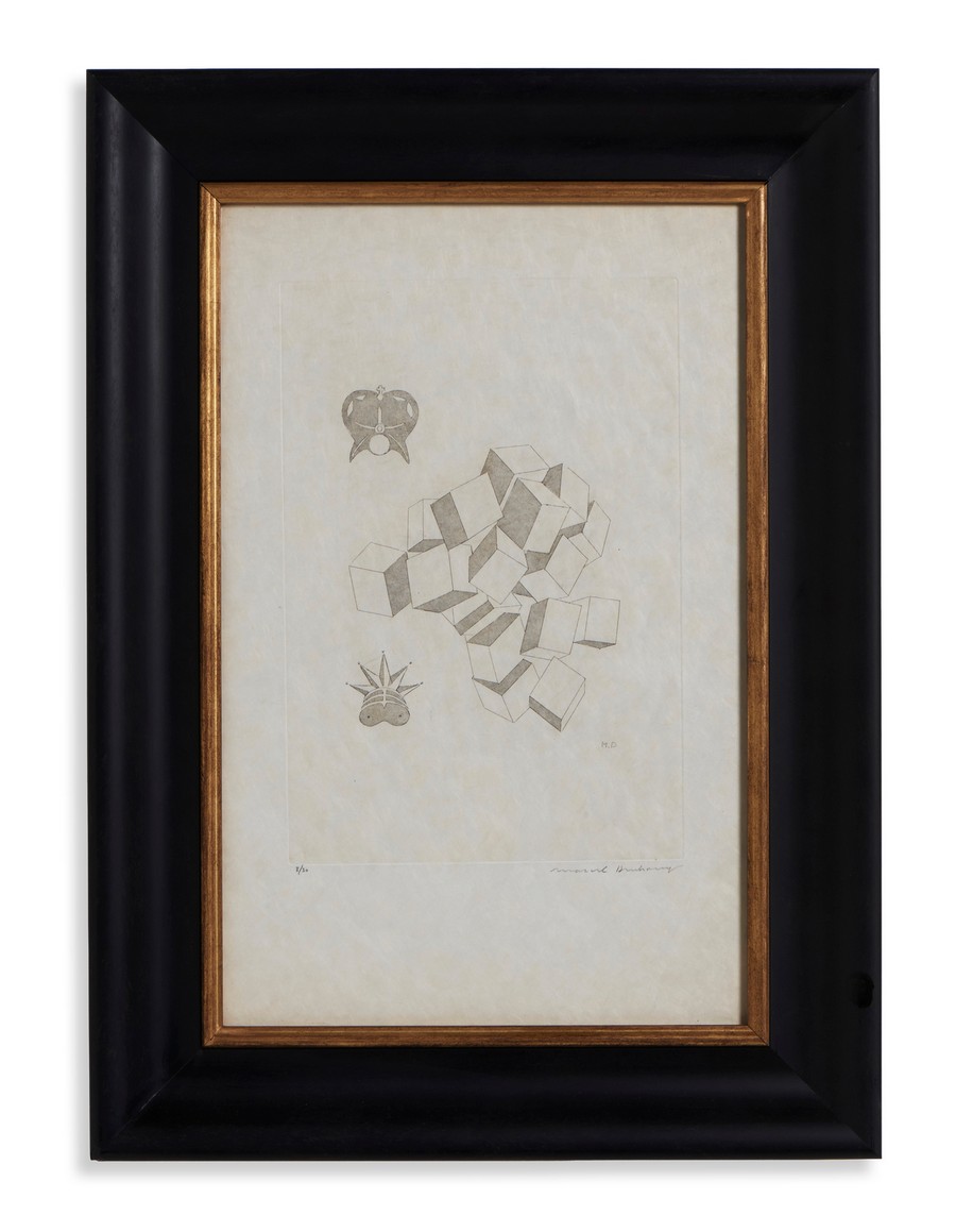DUCHAMP MARCEL (1887 - 1968) DA THE LARGE GLASS: THE KING AND THE QUEEN (II VOLUME). 1968. Acquaforte su carta giappone. Cm 32,50 x 50,00. firma, tiratura es. 8/30