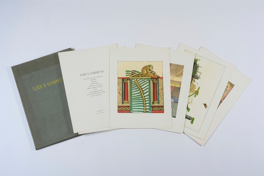 ERNST MAX (1891 - 1976) LIEUX COMMUNS: ONZE POEMES ET DOUZE COLLAGES DE MAX ERNST. 1971. Libro d'arte. Cm 36,00 x 51,00. cartella contiene 11 poesie scritte da Max Ernst accompagnate da 12 fotolitografie realizzate per illustrare i testi. Es.n. 131