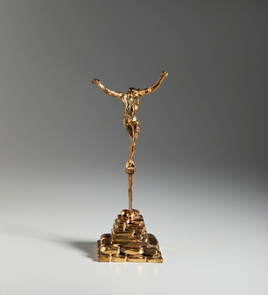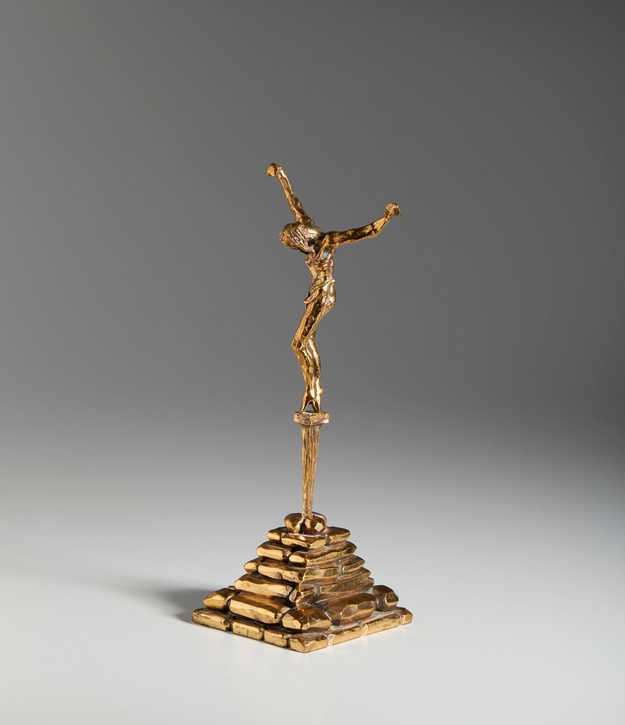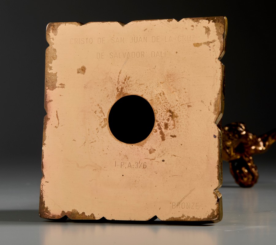 DALI' SALVADOR (1904 - 1989) CRISTO DE SAN JUAN DE LA CRUZ. Bronzo dorato. Cm 14,00 x 34,00 x 13,00. firma e tiratura incise alla base, es.p.a. 3/6