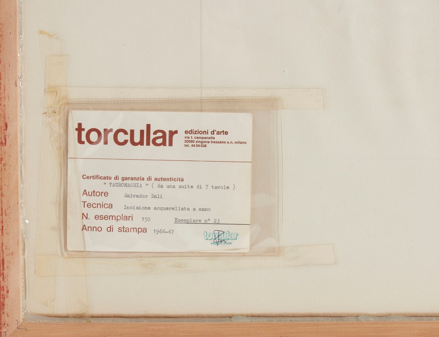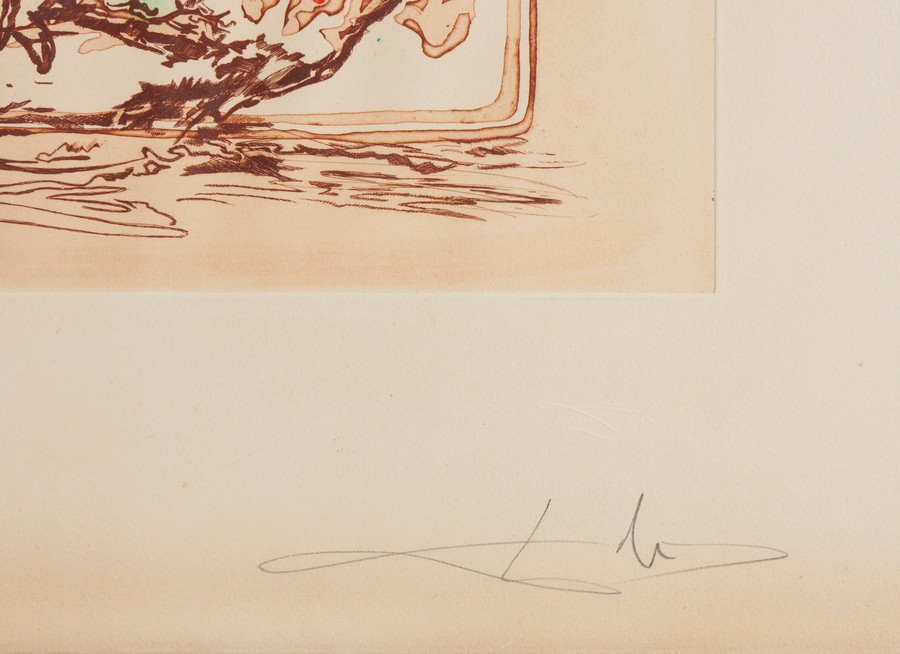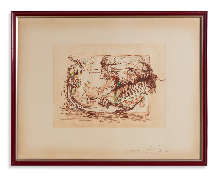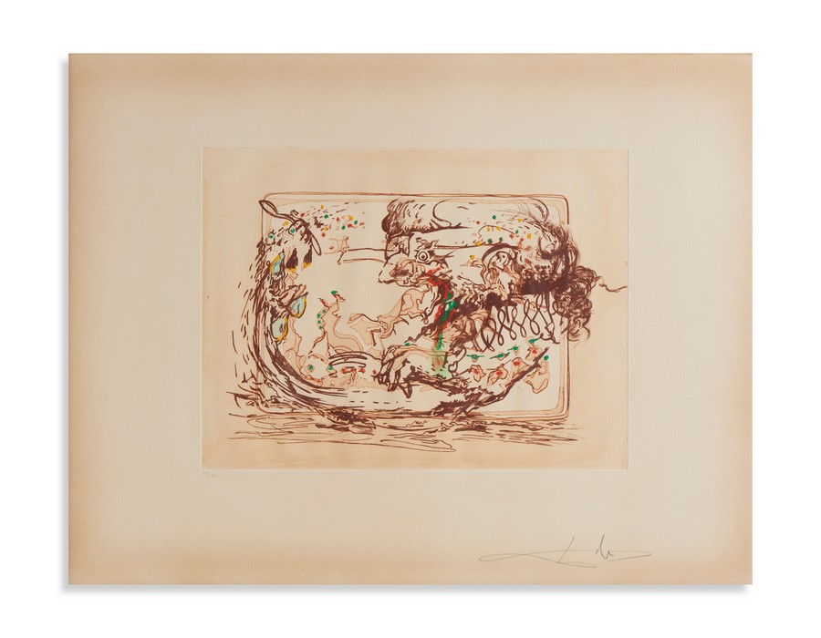DALI' SALVADOR (1904 - 1989) DA TAUROMACHIE SURREALISTE: LA TELEVISION. eliogravure, puntasecca e intervento manuale dell'artista. Cm 66,00 x 50,00. firma e tiratura a matita es 23/150