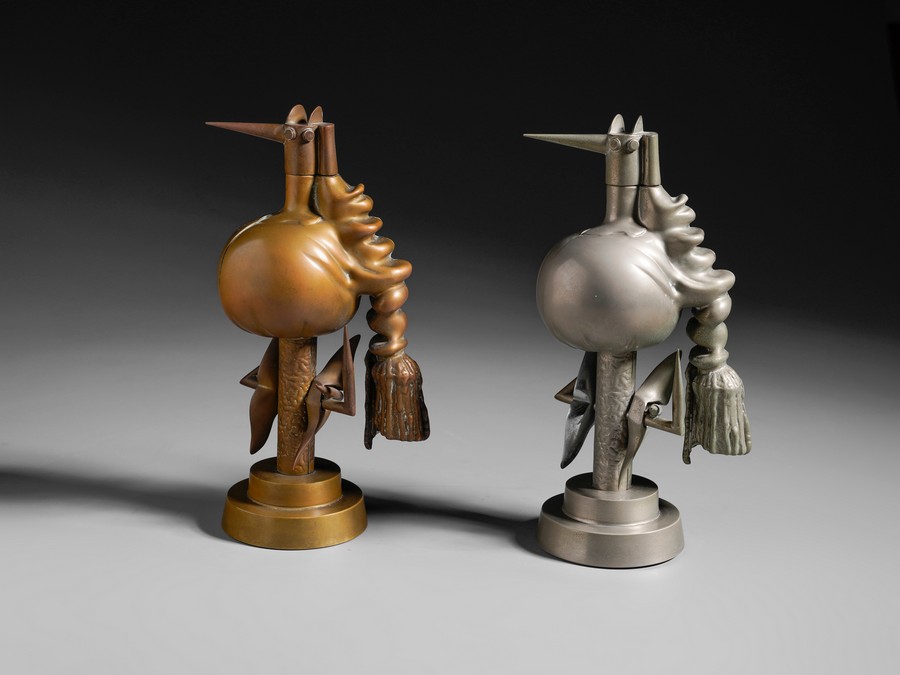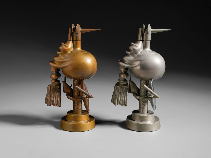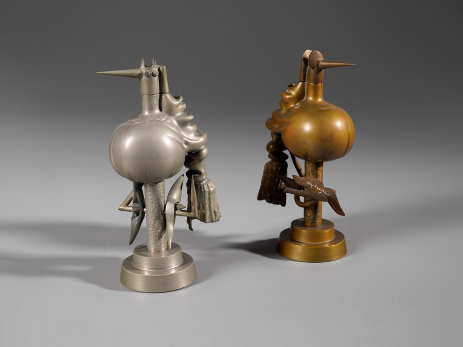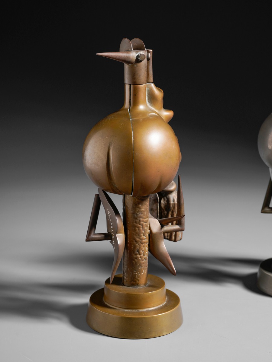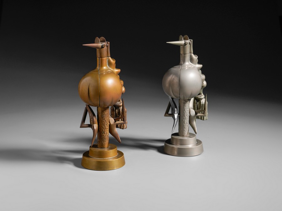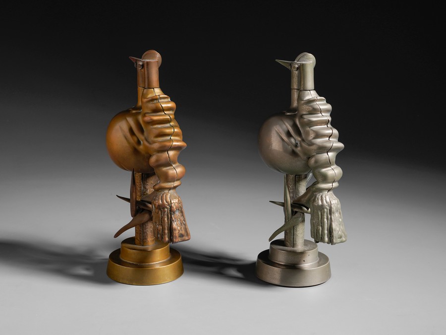 LAM WIFREDO (1902 - 1982) OISEAU DE FEU E OISEAU DE FER. 1970. ottone dorato e metallo cromato argentato. Cm 14,00 x 26,50 x 8,50. ogni elemento è firmato e numerato, es. 384/500 A - 374/500 B