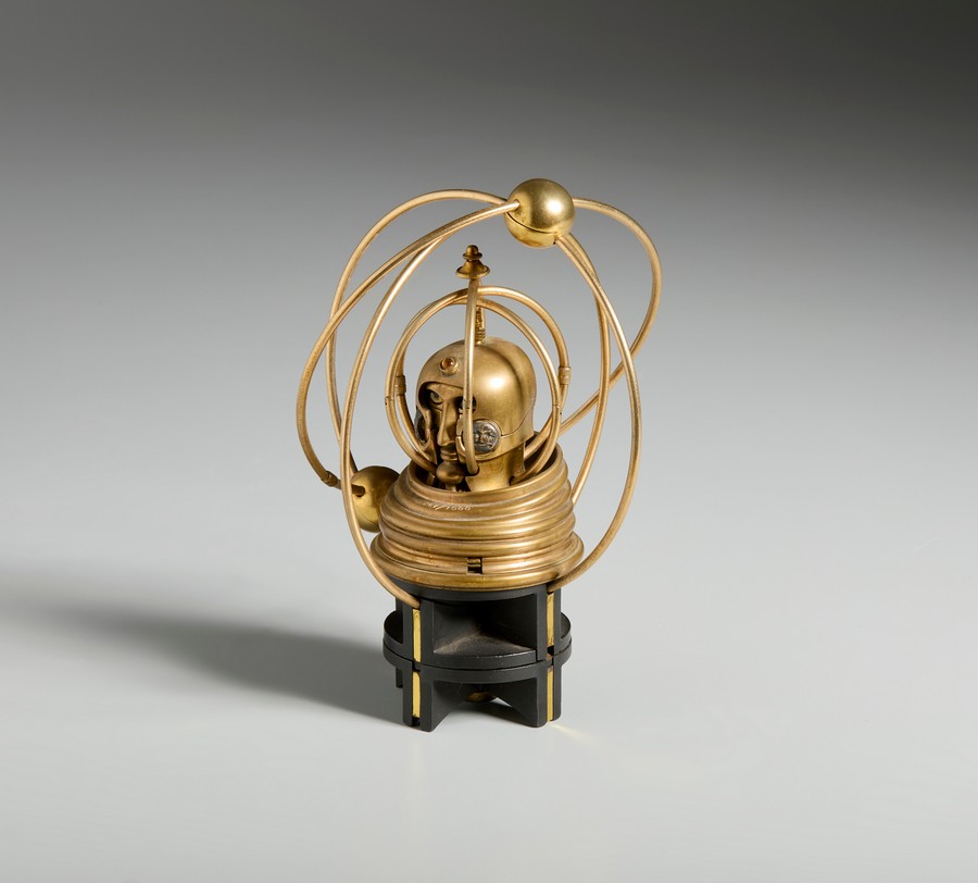 BERROCAL MIGUEL ORTIZ (1933 - 2006) ASTRONAUTE (HOMMAGE A JULES VERNE), 1979-1980. ottone e metallo brunito. Cm 12,50 x 17,00 x 14,00. firma e tiratura incisi, es. 267/1000