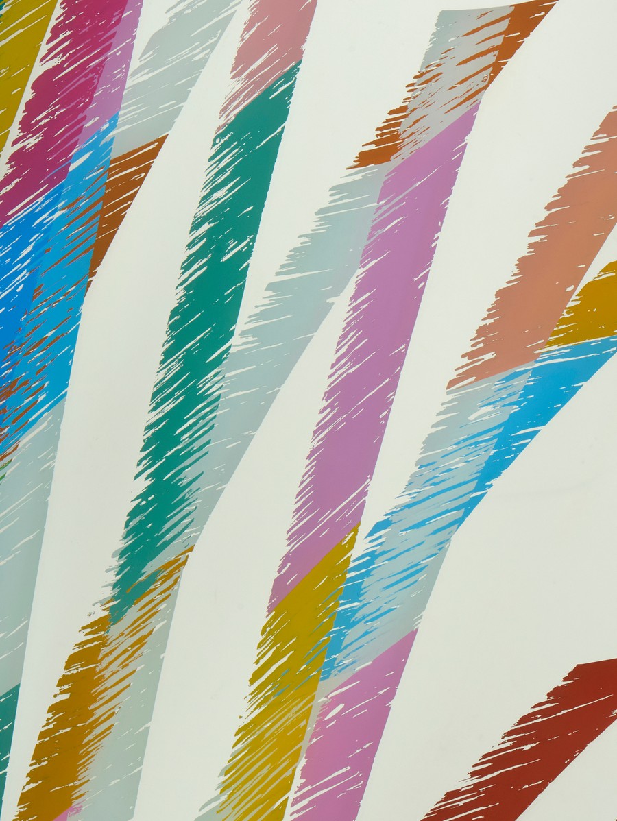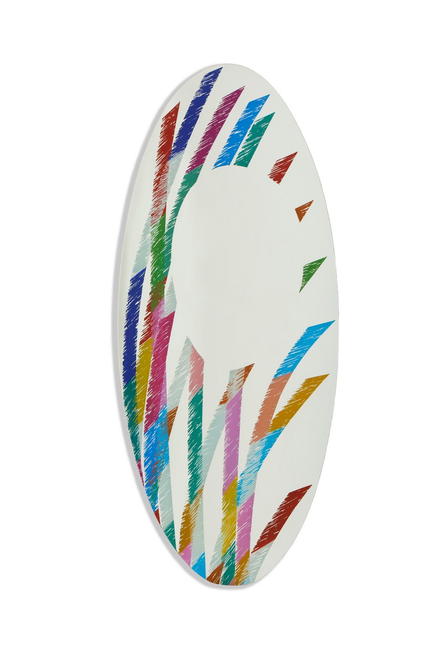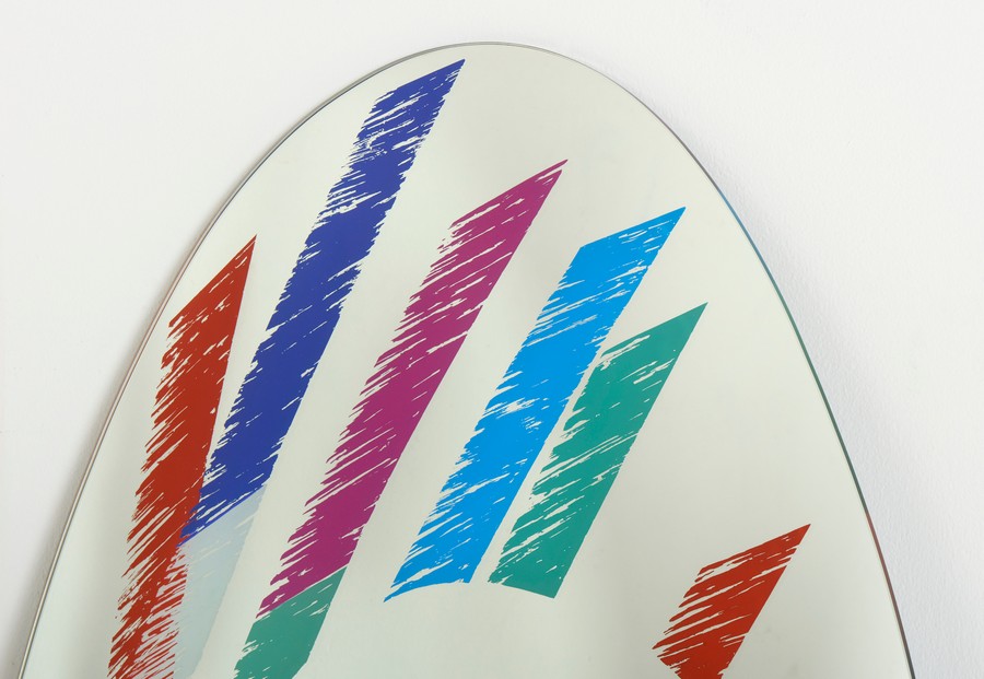 DORAZIO PIERO (1927 - 2005) SENZA TITOLO (1990 ca). specchio serigrafato. Cm 56,50 x 140,50. sul retro: etichetta metallica Morphos Acerbis International Division con firma a stampa dell'artista