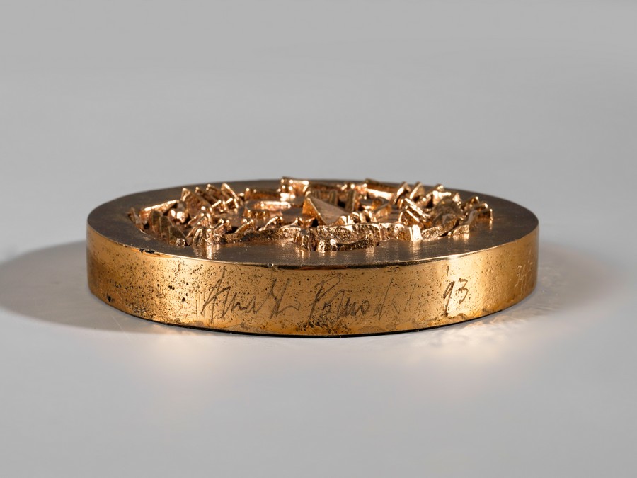 POMODORO ARNALDO (1926 - 2025) FERMACARTE PER GRUPPO EDITORIALE RUSCONI. 1993. scultura in bronzo. Cm 12,00 x 12,00. firma, data e tiratura incise, es. 34/50