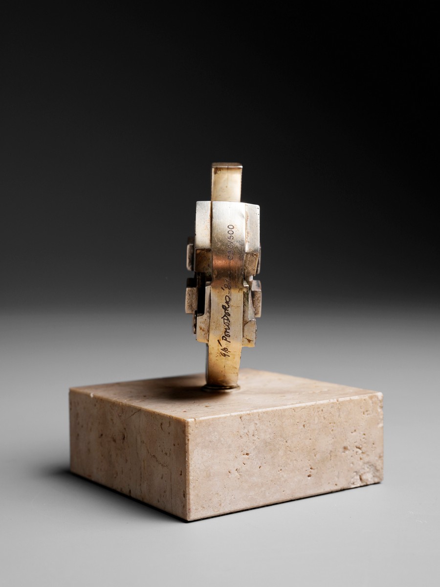POMODORO GIO' (1930 - 2002) SOLE 3. 1981. Bronzo e marmo.. Cm 8,00 x 11,50 x 8,00. firma, data, titolo e tiratura incise, es. 30/500