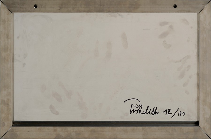 PISTOLETTO MICHELANGELO (n. 1933) S.P., 2009. 2009. serigrafia su acciaio inox lucidato a specchio. Cm 50,00 x 30,00 x 2,00. sul retro: firma e tiratura a pennarello, es. 42/100