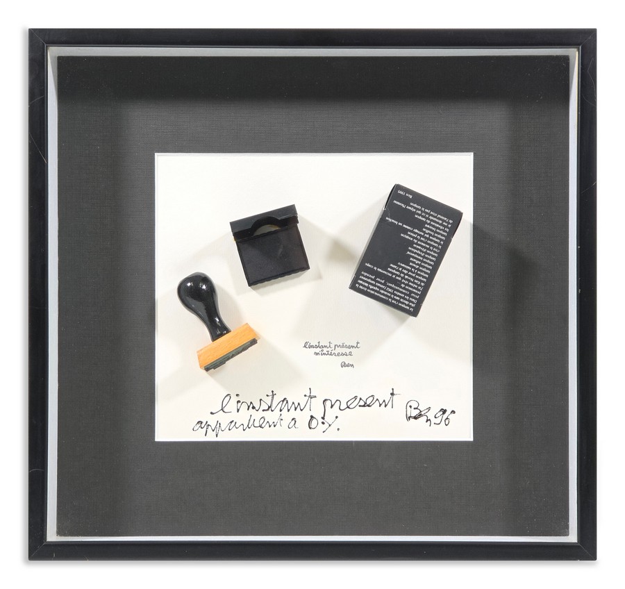 VAUTIER BEN (1935 - 2024) L'INSTAN PRESENT M'INTERET. 1996. Assemblaggio. Cm 20,00 x 20,00. firma, data e titolo