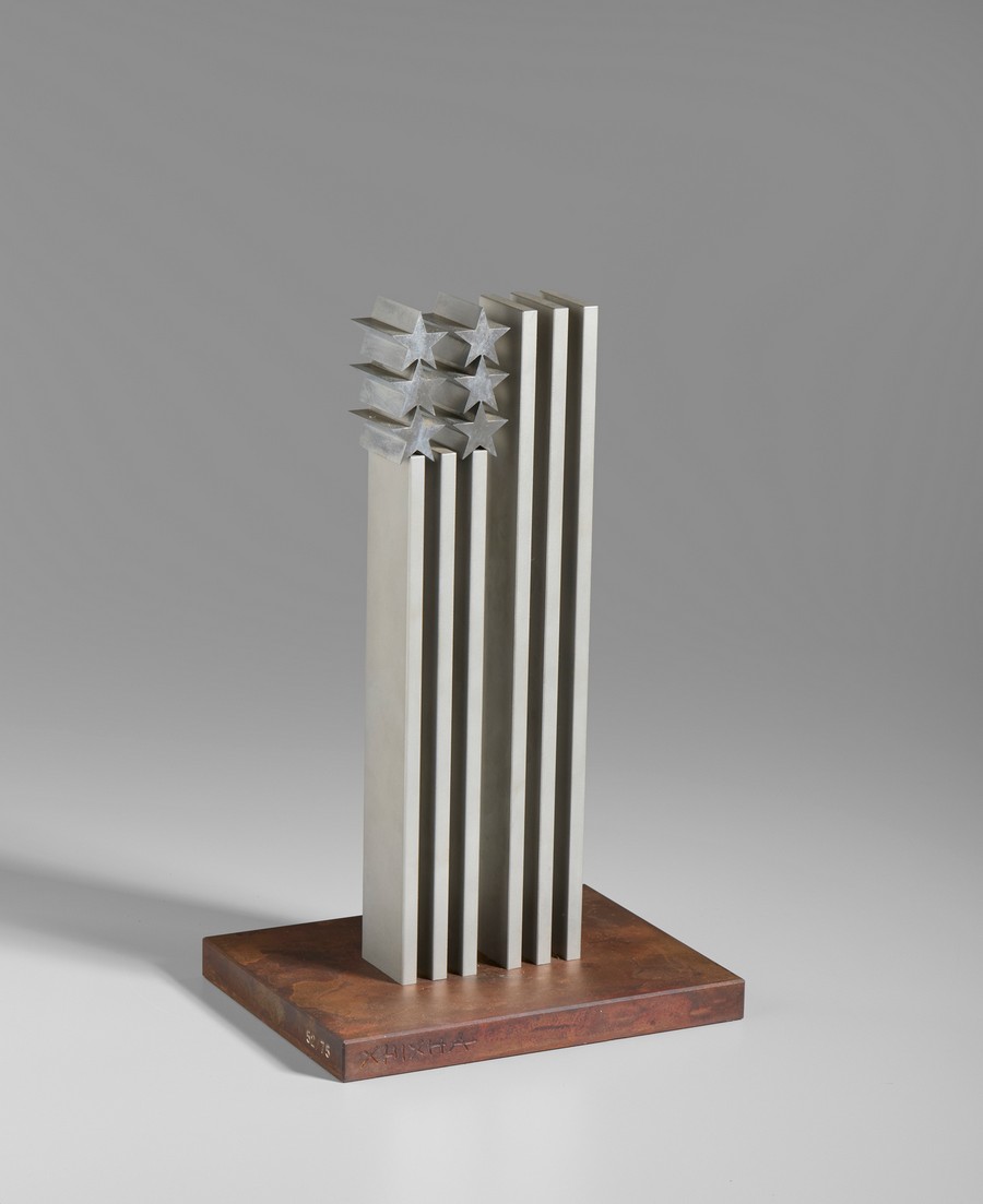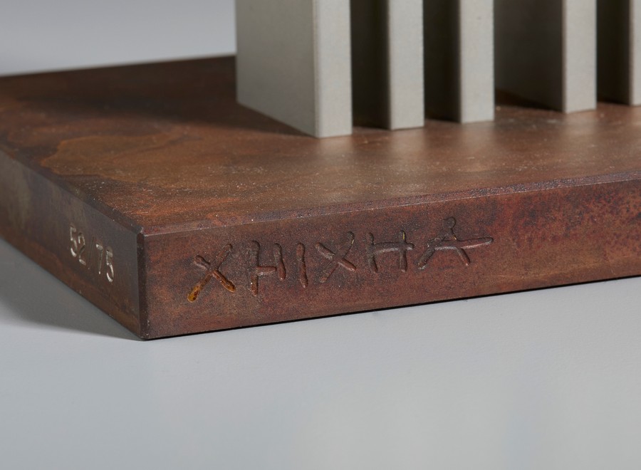 XHIXHA HELIDON (n. 1970) RENAISSANCE OF TOWERS. 2009. Bronzo e legno.. Cm 21,00 x 34,50 x 16,00. firma e tiratura incise alla base, es. 52/75