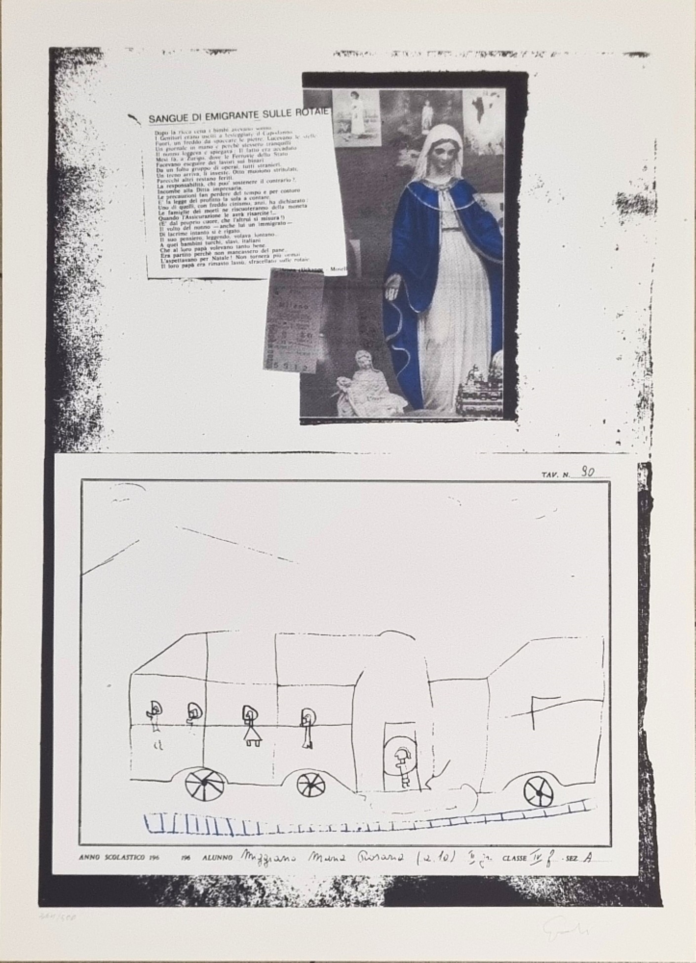 GELLI FRANCO Parabita 1930 - 1997 "Senza titolo" Serigrafia su cartoncino cm 50x70. Firmata a matita sul fronte in basso a destra, tiratura 364/400 a sinistra. Facente parte della cartella "Valigia dell'emigrante".