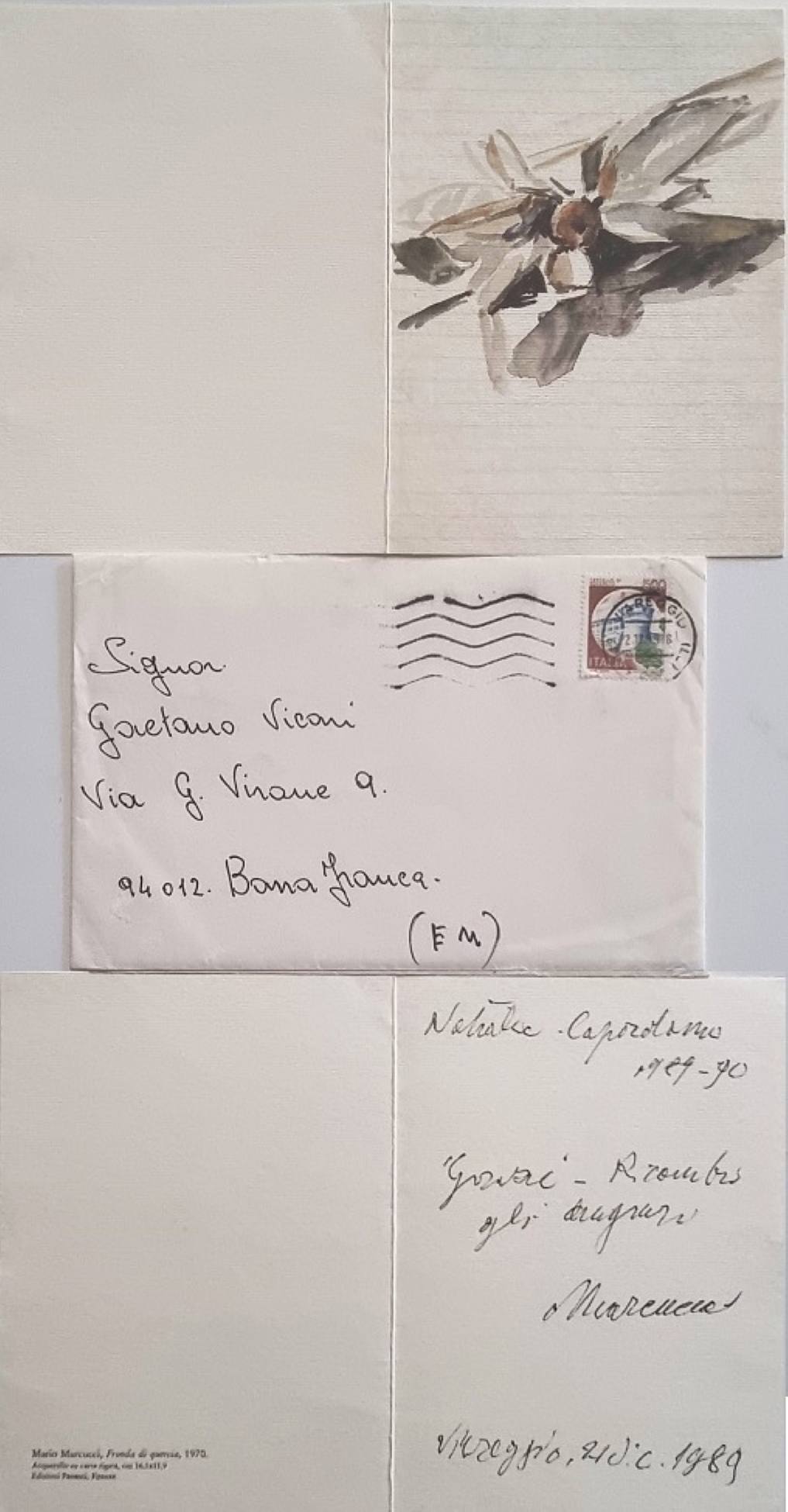 MARCUCCI MARIO Viareggio 1910 - 1992 "Senza titolo" Stampa serigrafica su cartoncino rigato cm 23x13,5 del 1989. Firmata e datata. Corredata da busta per lettera originale.