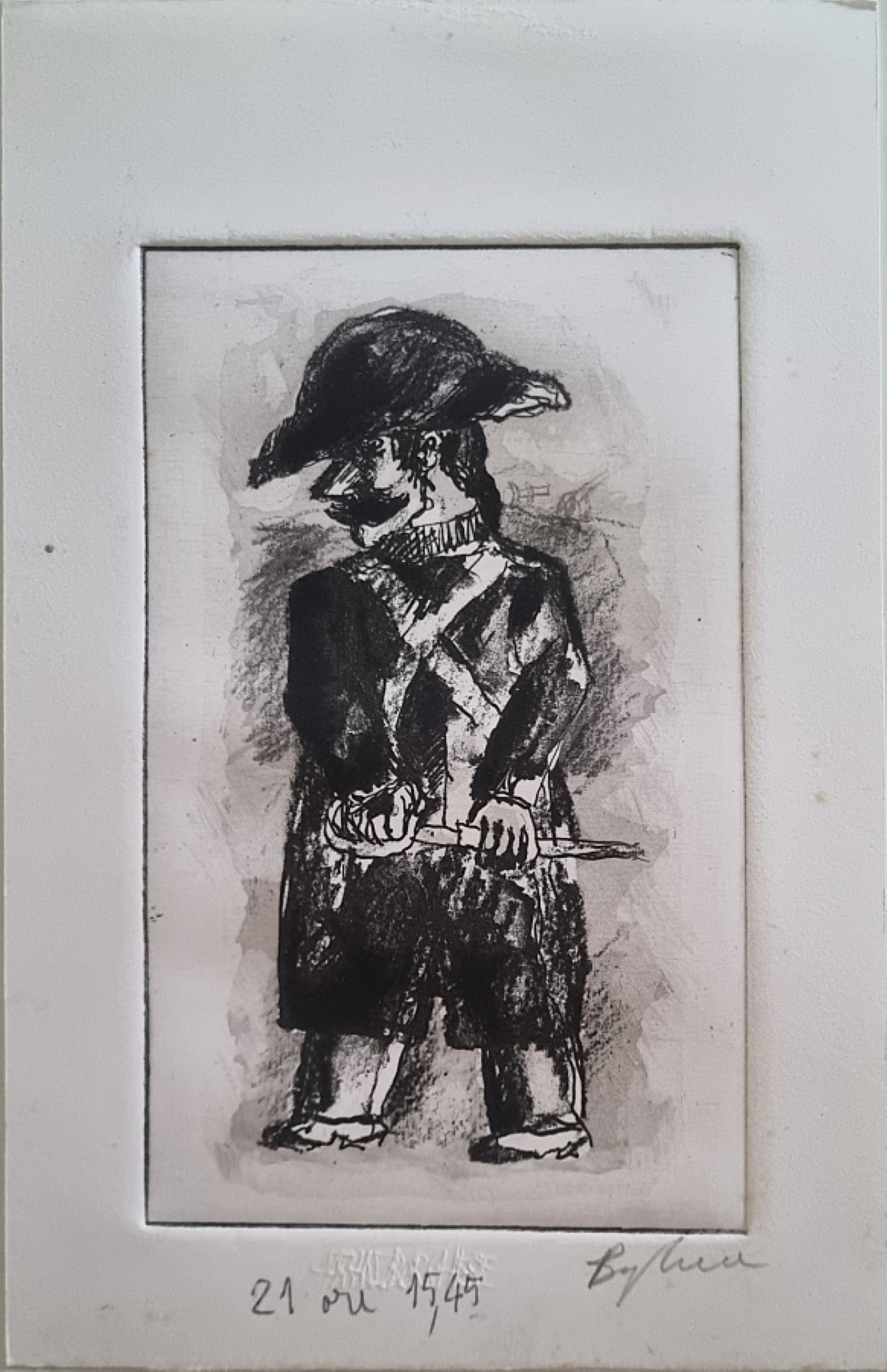 BORGHESE FRANZ Roma 1941 - 2005 "Senza titolo" Incisione, prova di stampa per esecuzione definitiva, su cartoncino cm 15,7x24,7 (foglio), cm 10,7x17,5 (disegno). Firmata sul fronte in basso a destra, timbro a secco "Borghese" e orario scritto a penna al centro. Provenienza Studio Borghese.