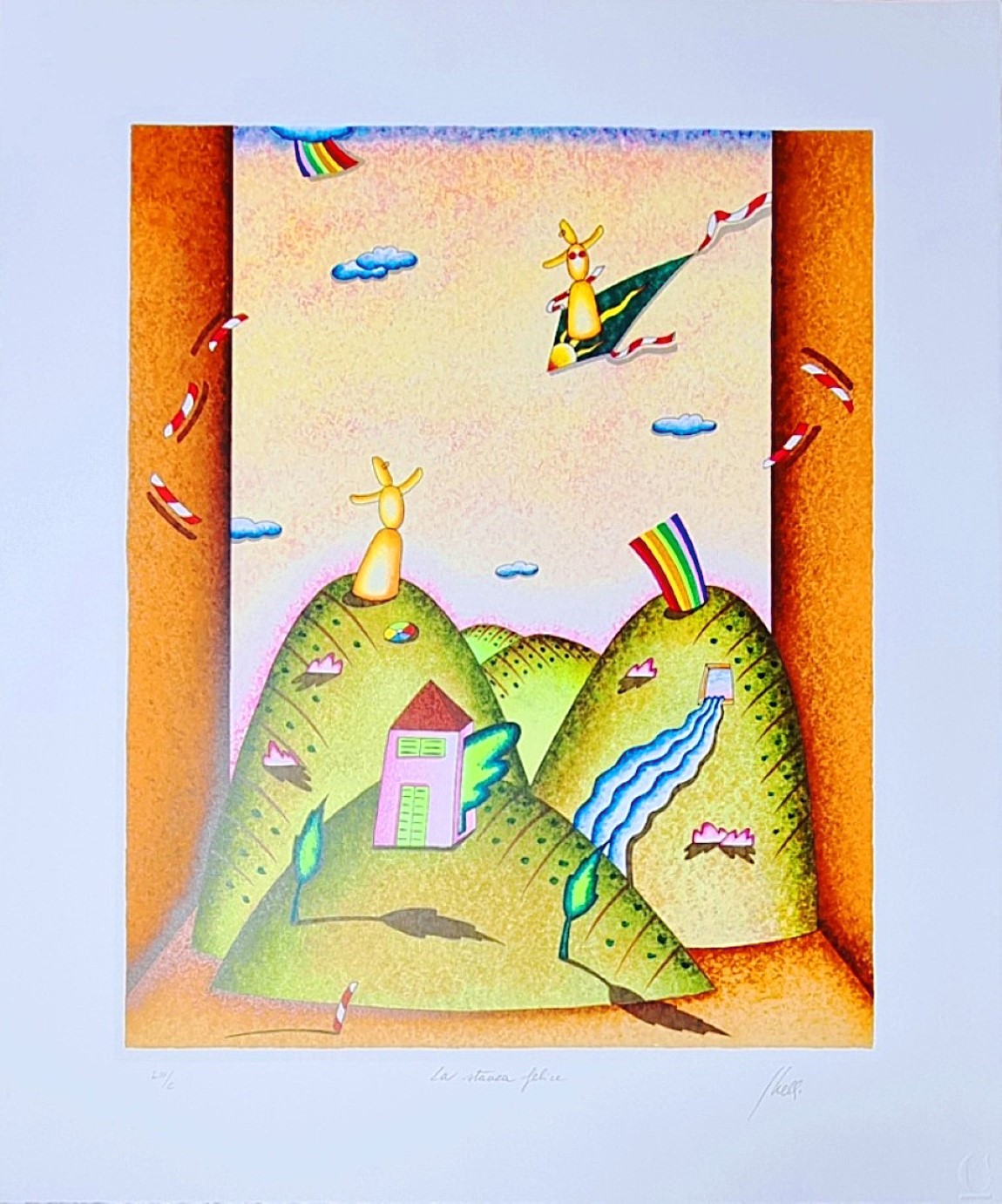 GHELLI GIULIANO Firenze 1944 - 2014 "La stanza felice" Serigrafia su cartoncino cm 50x60. Firmata sul fronte in basso a destra, intitolata al centro e numerata a sinistra.