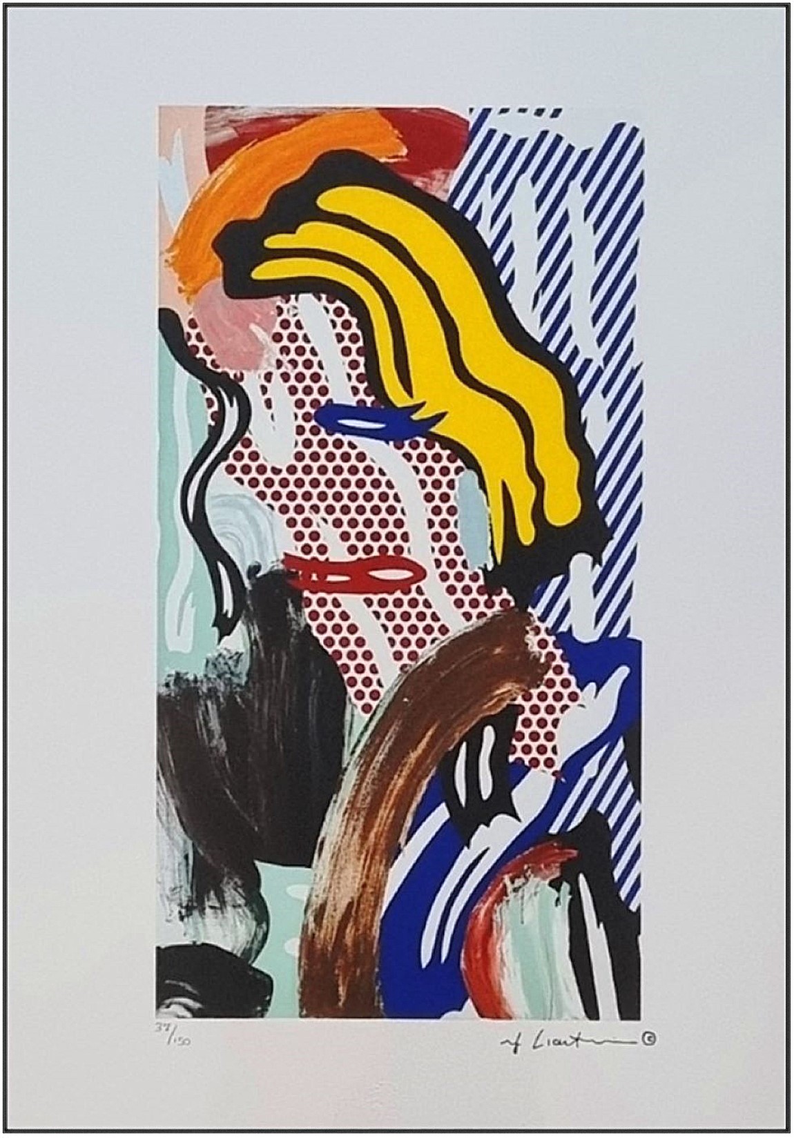 LICHTENSTEIN ROY New York 1923 - 1997 "Senza titolo" Litografia d'apres su cartoncino cm 35x50. Numerata a matita 37/150 sul fronte in basso a sinistra, firmata in stampa a destra. Presenti sul retro timbro a secco e timbro a tampone dell'editore. Edizione Castelli Graphics.
