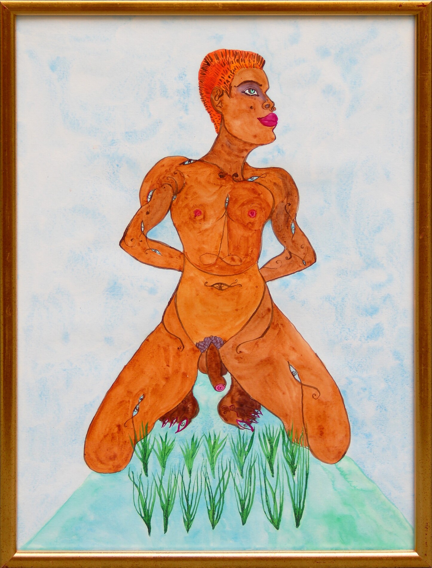 ONTANI Luigi, Anak Padi, 2009-2024, china e acquarello su carta in cornice dorata, cm 52x37