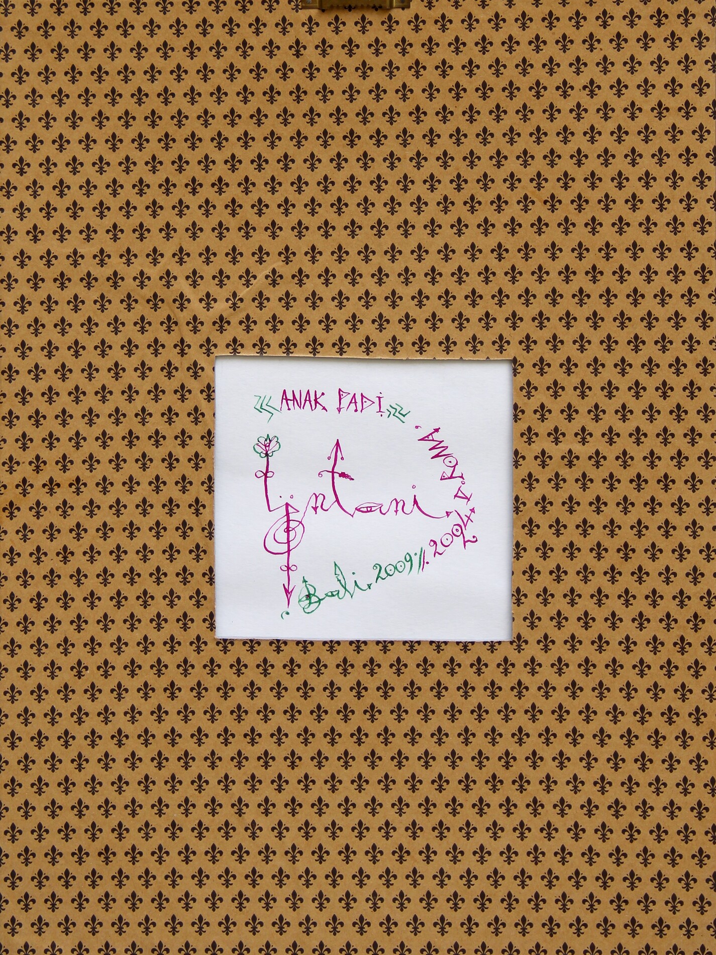 Titolo, firma, luogo, data "Anak Padi, Ontani, Bali 2009 / 2024 Roma" (al retro)