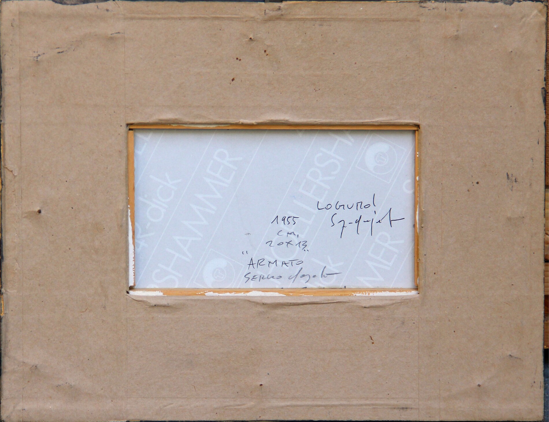 Data, dimensioni, titolo, firma "1955, cm 20x13, Armato, Sergio Dangelo" (al retro)