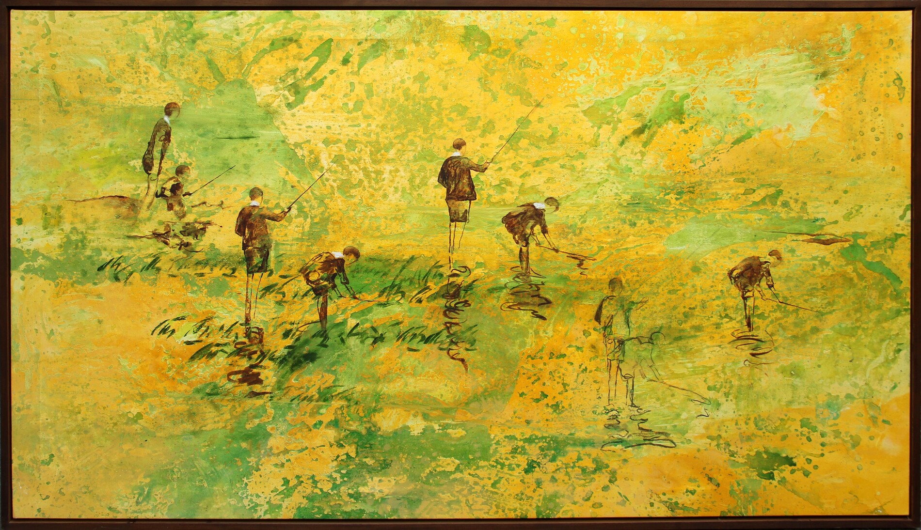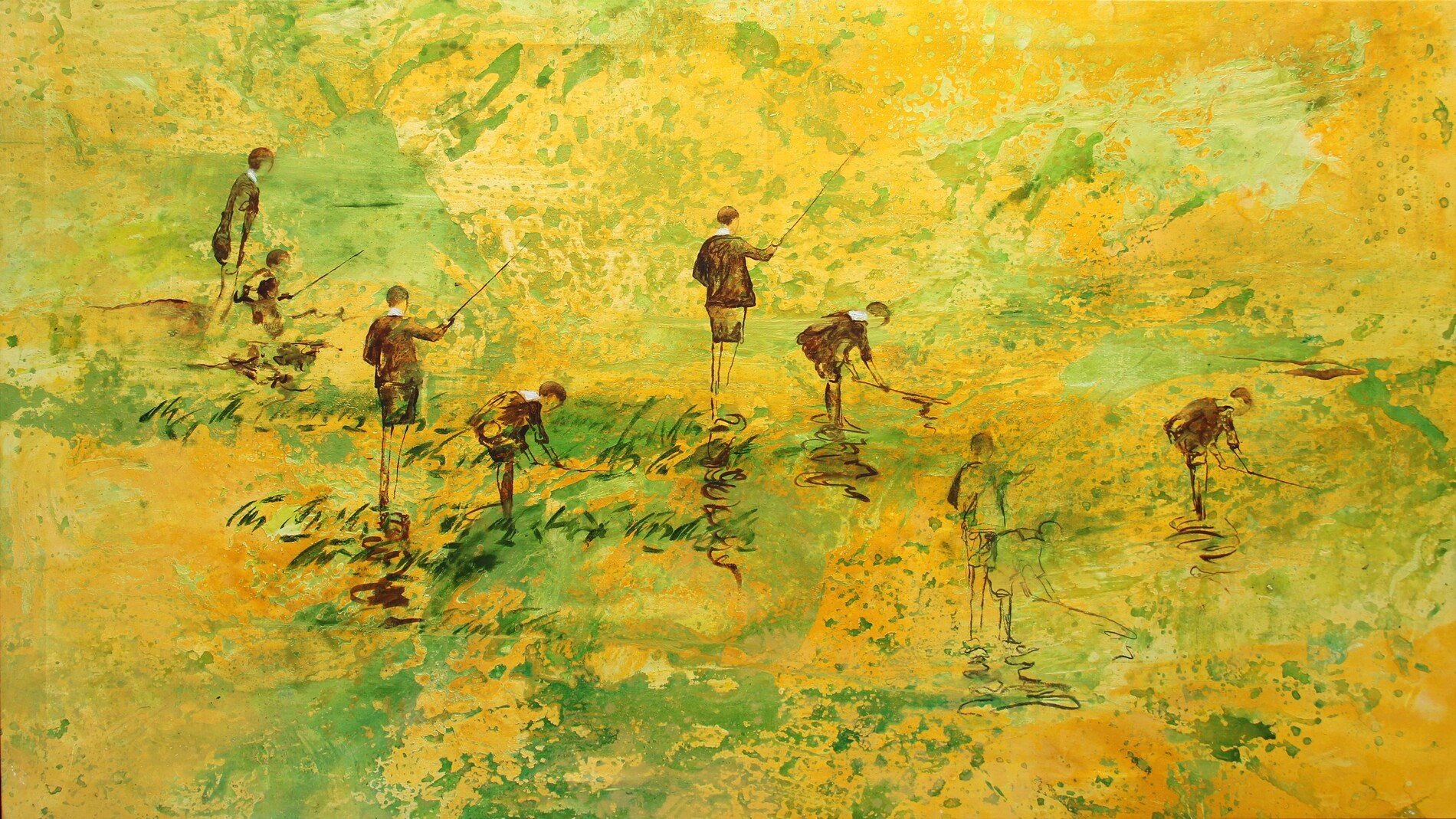 CONTE Guillermo, Ninos pescadores amarillos, 2018, olio su tela, cm 113x194
