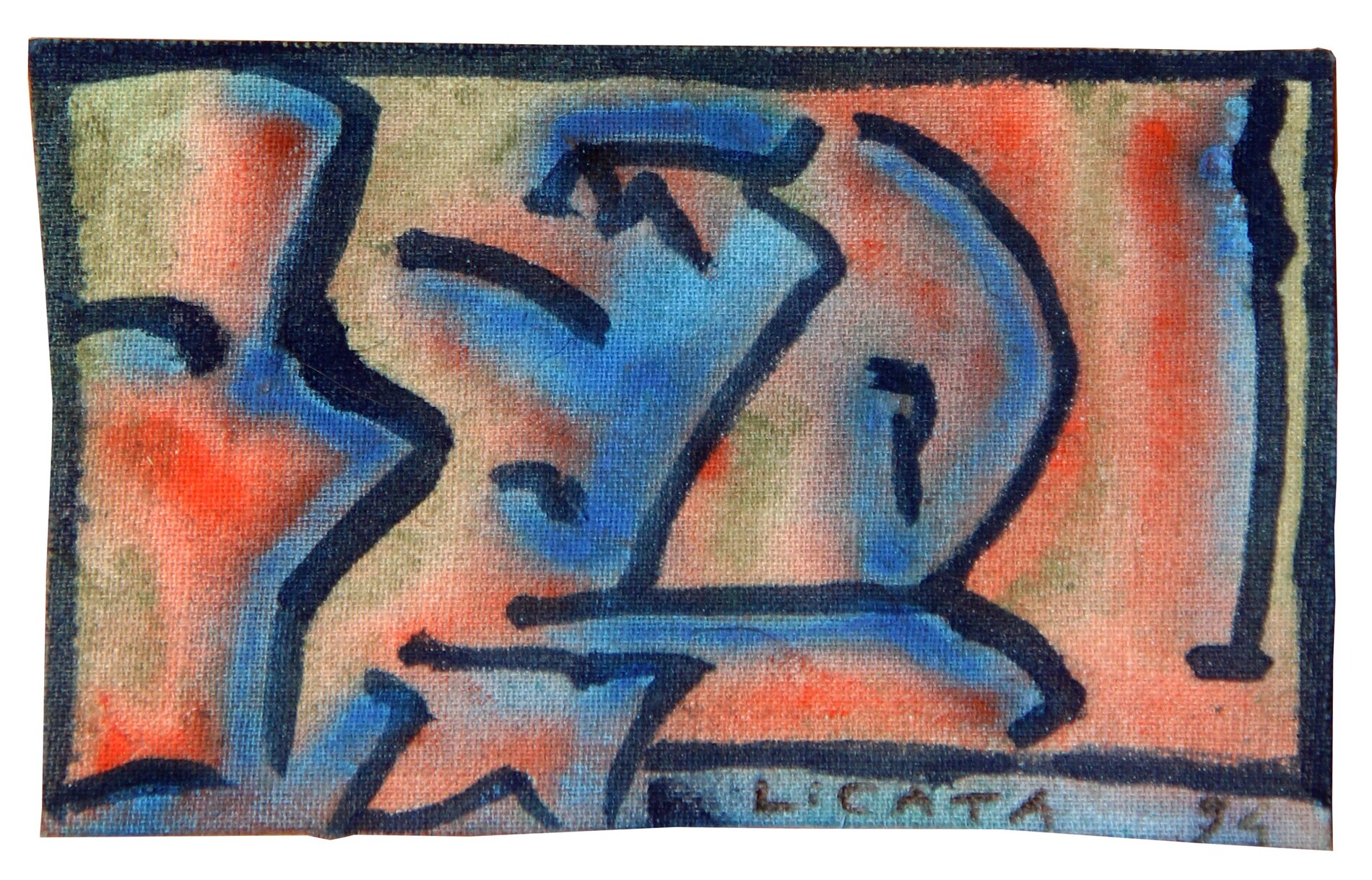 LICATA Riccardo, Viaggio in Spagna 1, 1994, tempera su tela riportata su cartoncino, cm 6x9,5