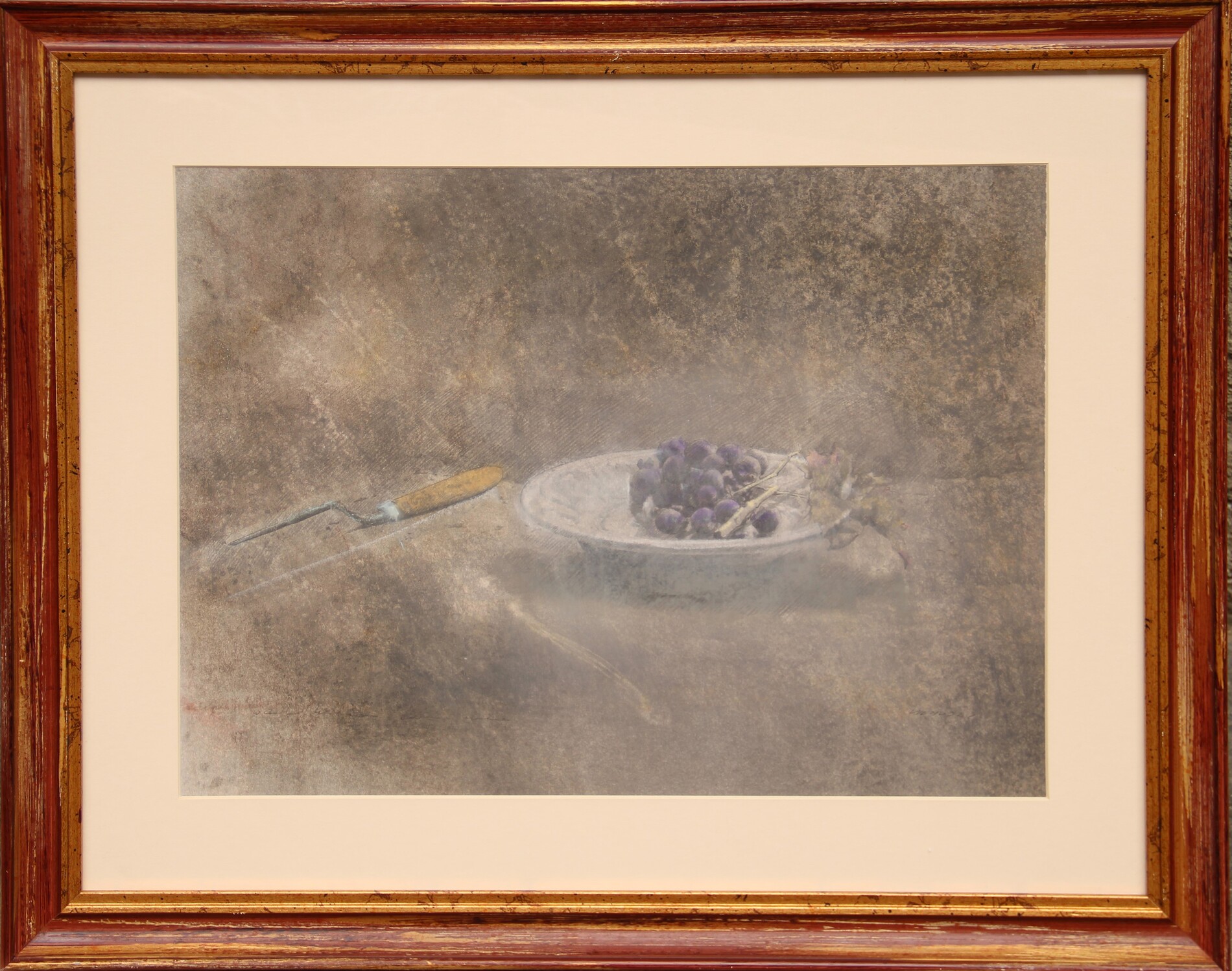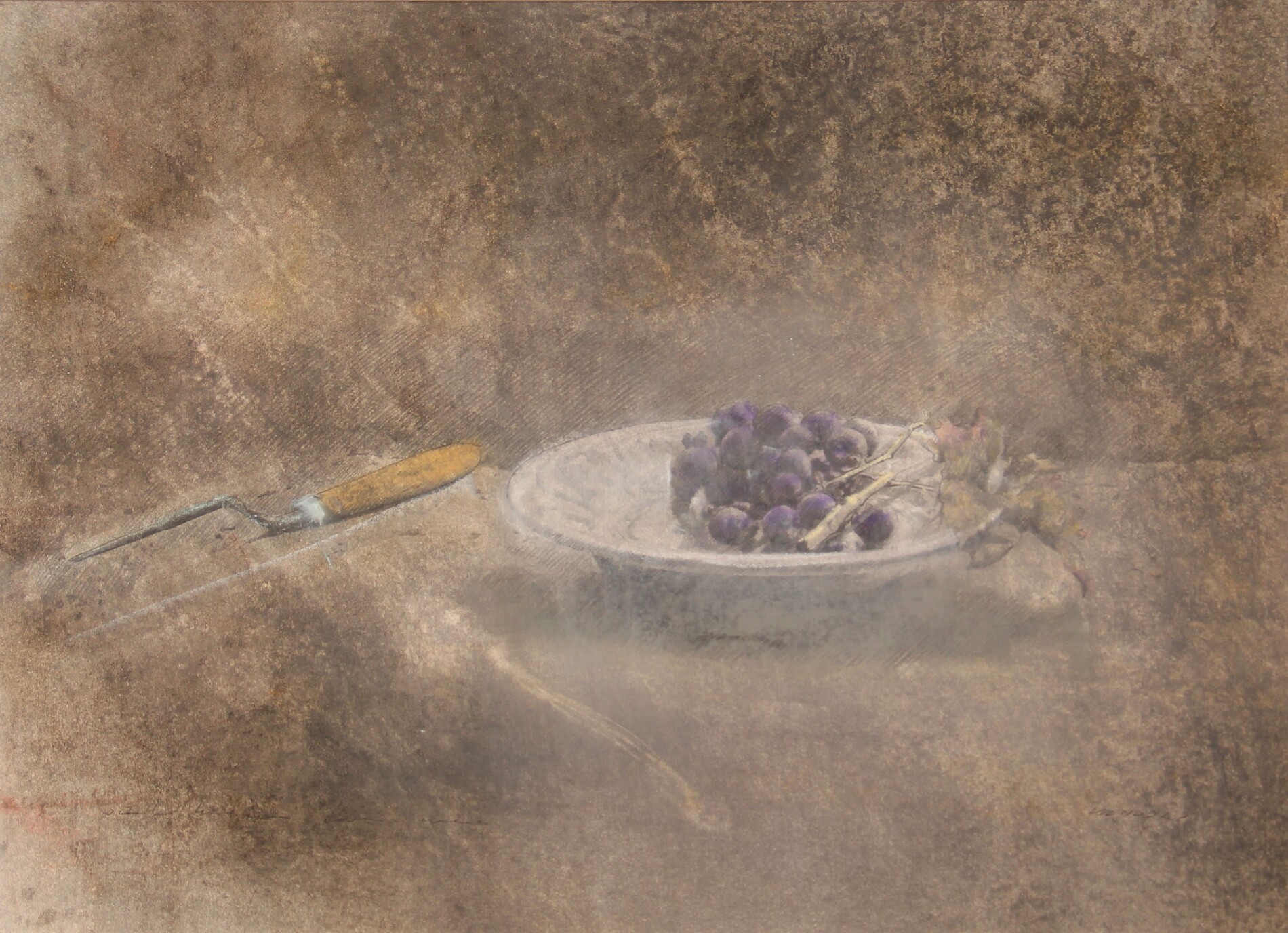 VIGNOZZI Piero, Scodella con uva nera, 2002, olio, pastelli e tecnica mista su carta, cm 39x51