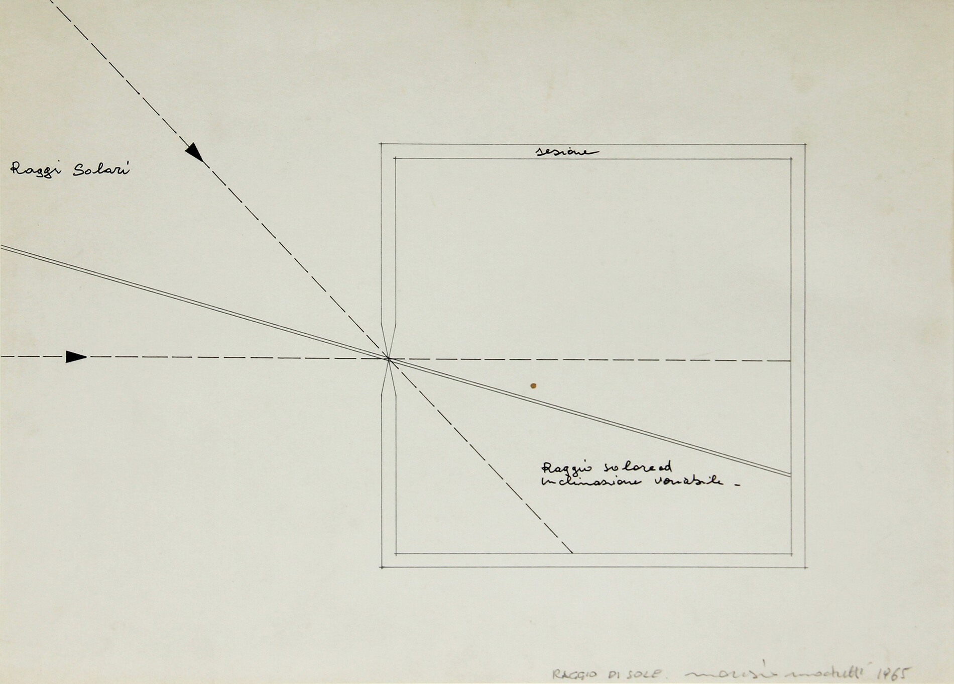 Titolo, firma, data "Raggio di sole, Maurizio Mochetti, 1965" (in basso a destra)