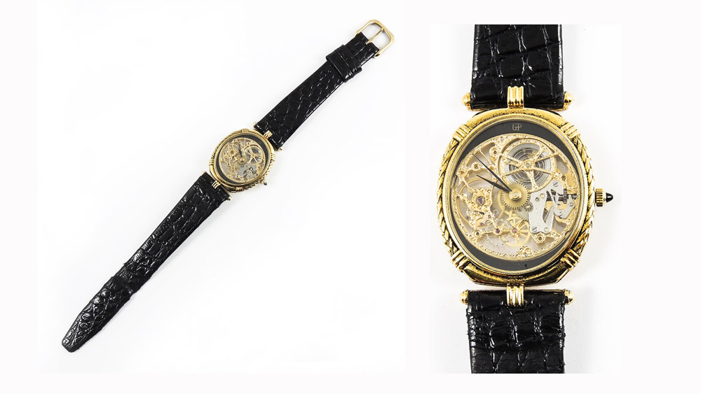 OROLOGIO SQUELETTE DA POLSO LADY IN ORO GIALLO Girard Perregaux quadrante...