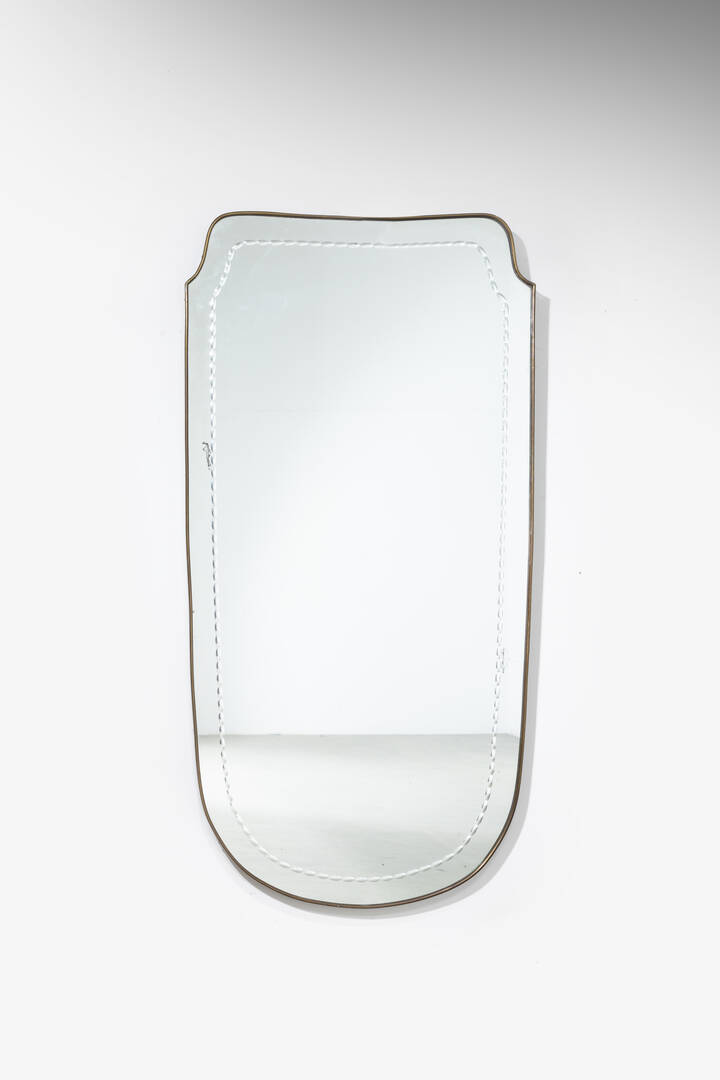 Struttura in legno, vetro specchiato e bordo in ottone.