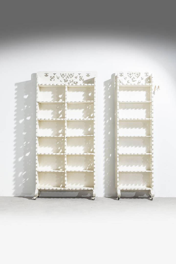 Coppia di librerie con appendiabiti
