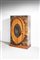 Struttura in legno con rivestimento in pergamena vetrificata. Ripiani interni in vetro e vetro specchiato.