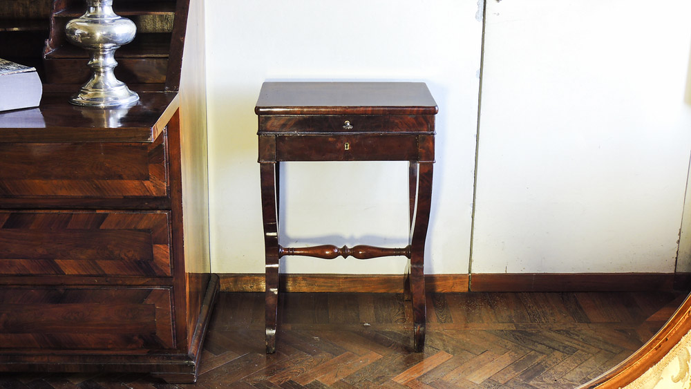 TAVOLINO TOILETTE IMPIALLACCIATO IN PIUMA DI MOGANO seconda metà del XIX...