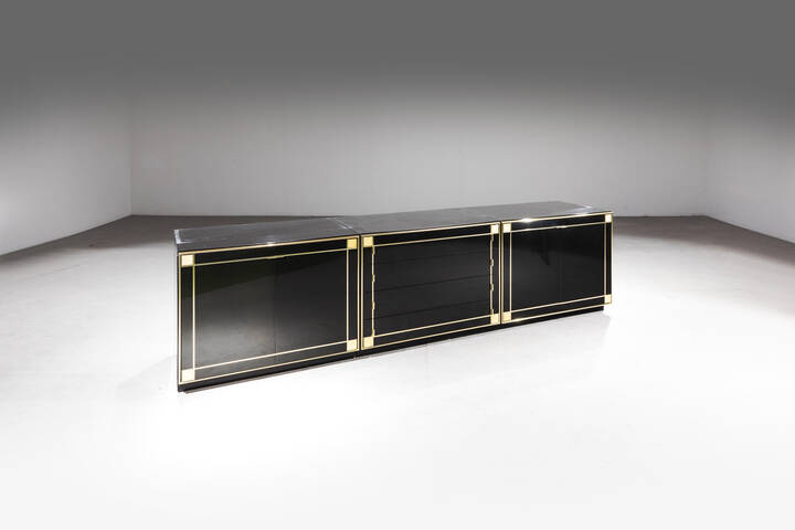 Struttura in legno laccato e particolari in ottone.