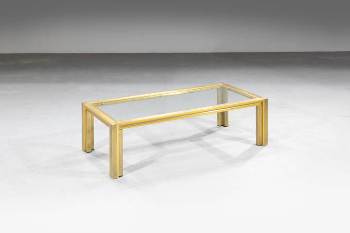 Struttura in ottone, piano in vetro.