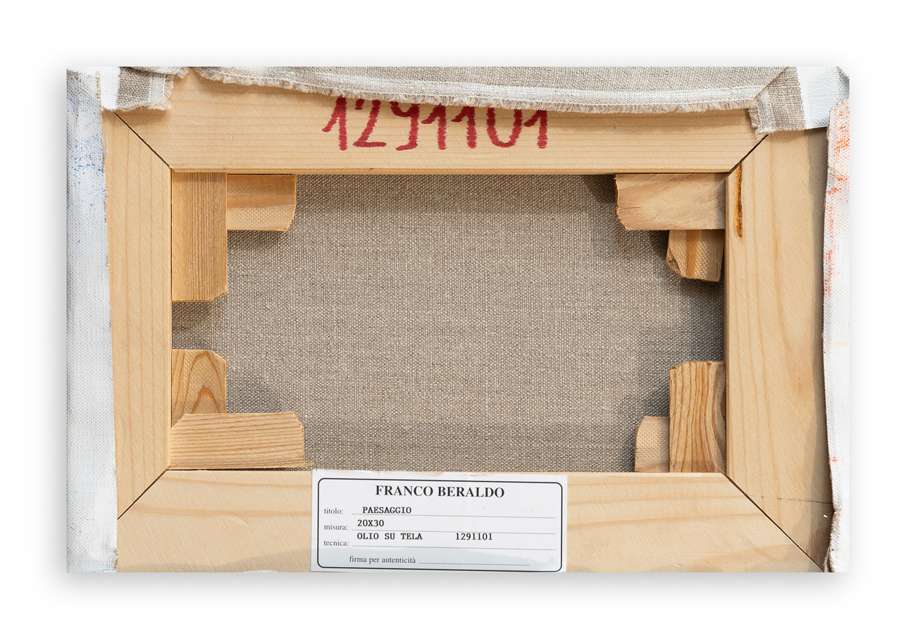 Cartiglio dell'Artista recante caratteristiche tecniche dell'opera e numero di repertorio al retro